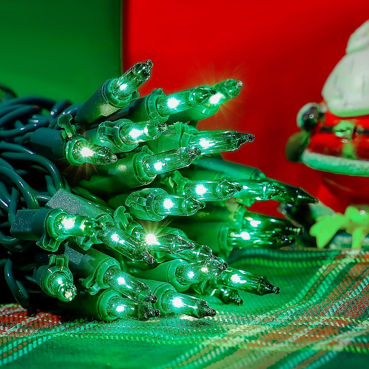 - 🌲Safe to Use : 50count green Christmas string lights are UL certified and the quality is guaranteed. Our Christmas strings lights have built-in fuses, which will protect the short circuit caused by the damaged wire and can effectively prevent the possibility of fire. High quality use rest assured. Warm tips: Please kindly protect these string lights from immersing in water and keep the plug dry.