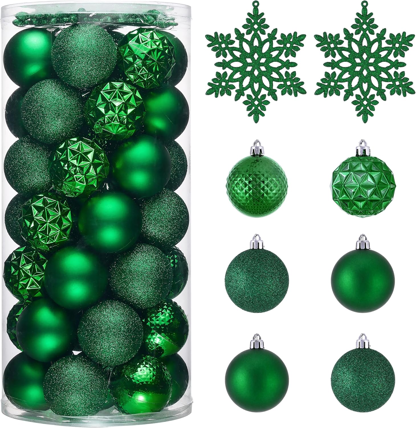 - 【Package and Size】This ornament ball set include 50pcs Christmas ornaments measuring 2.36 inches in diameter, featuring seamless connections for a polished look