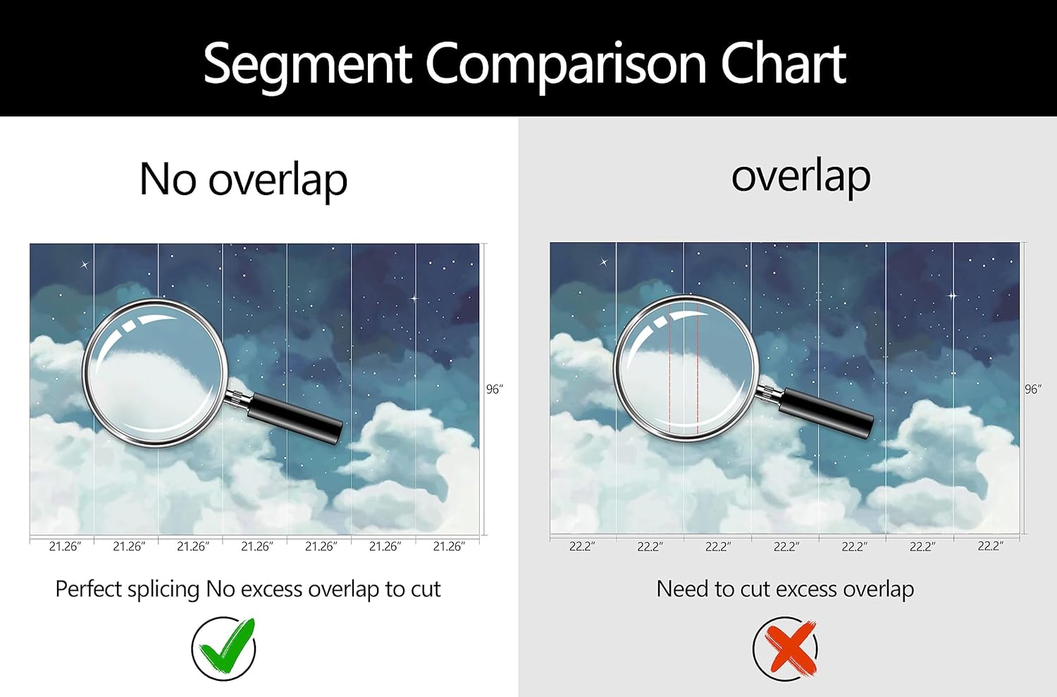- Mural Size: The total size of this mural wallpaper is 149" x 96" / 378CM x 244CM (W x H), cut into 7 pieces, each measuring 21.26" x 96", for easy installation.