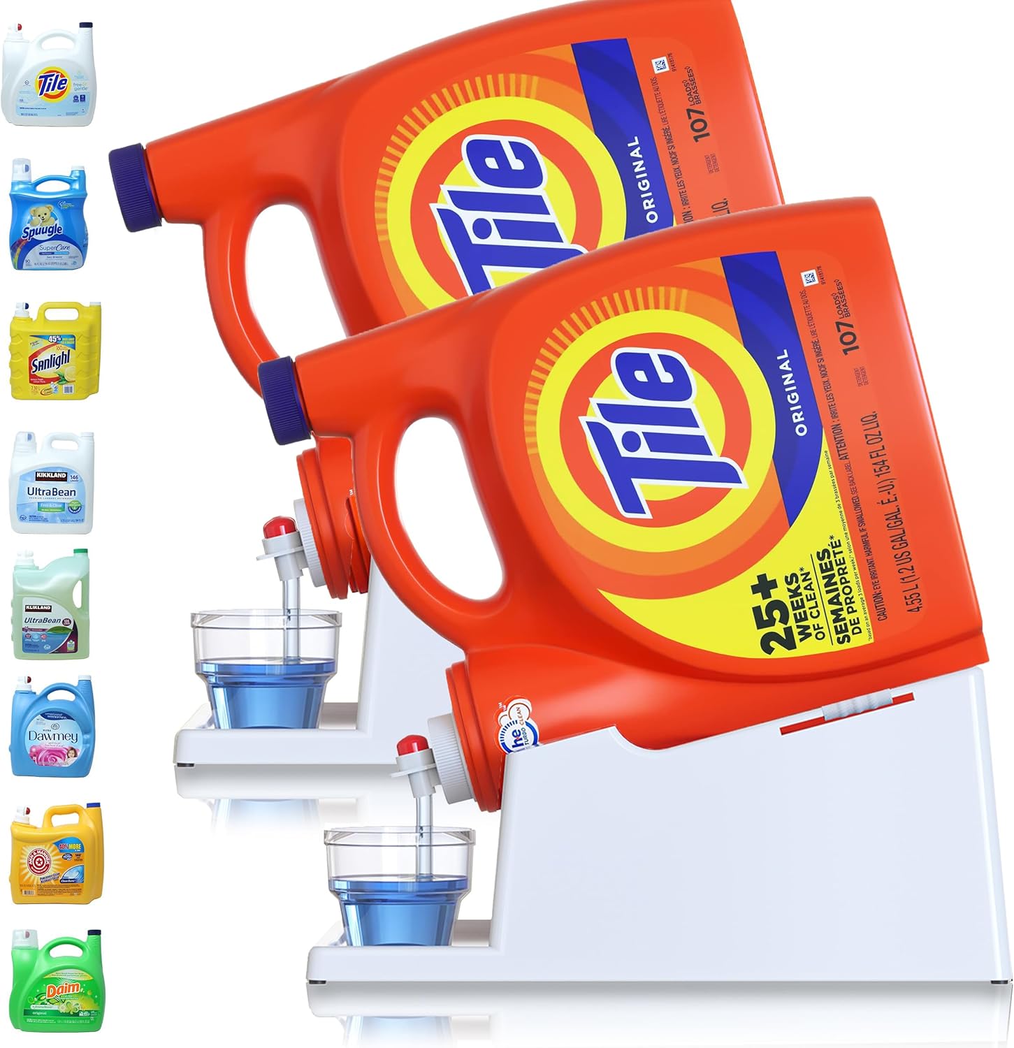 - [OUTSTANDING DESIGN] - This Laundry Detergent Holder has an "Angled" Feature. No need to tilt or lift the bottle. This Laundry Detergent Stand can help you to be more energy-saving at a cheap cost by using this item for both your detergent and fabric conditioner bottles as part of your daily Laundry Supplies