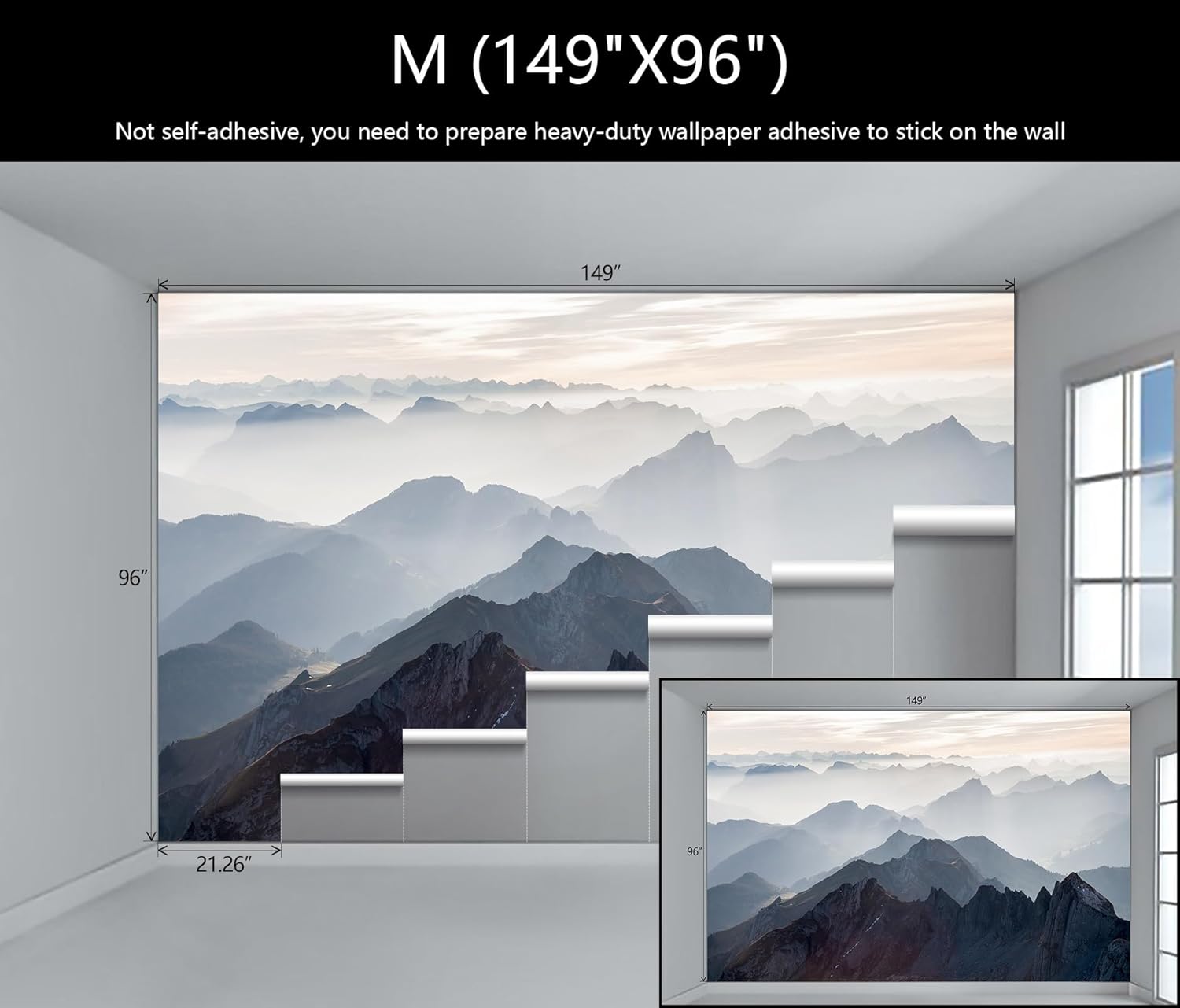 - Mural Size: The total size of this mural wallpaper is 149" x 96" / 378CM x 244CM (W x H), cut into 7 pieces, each measuring 21.26" x 96", for easy installation.
