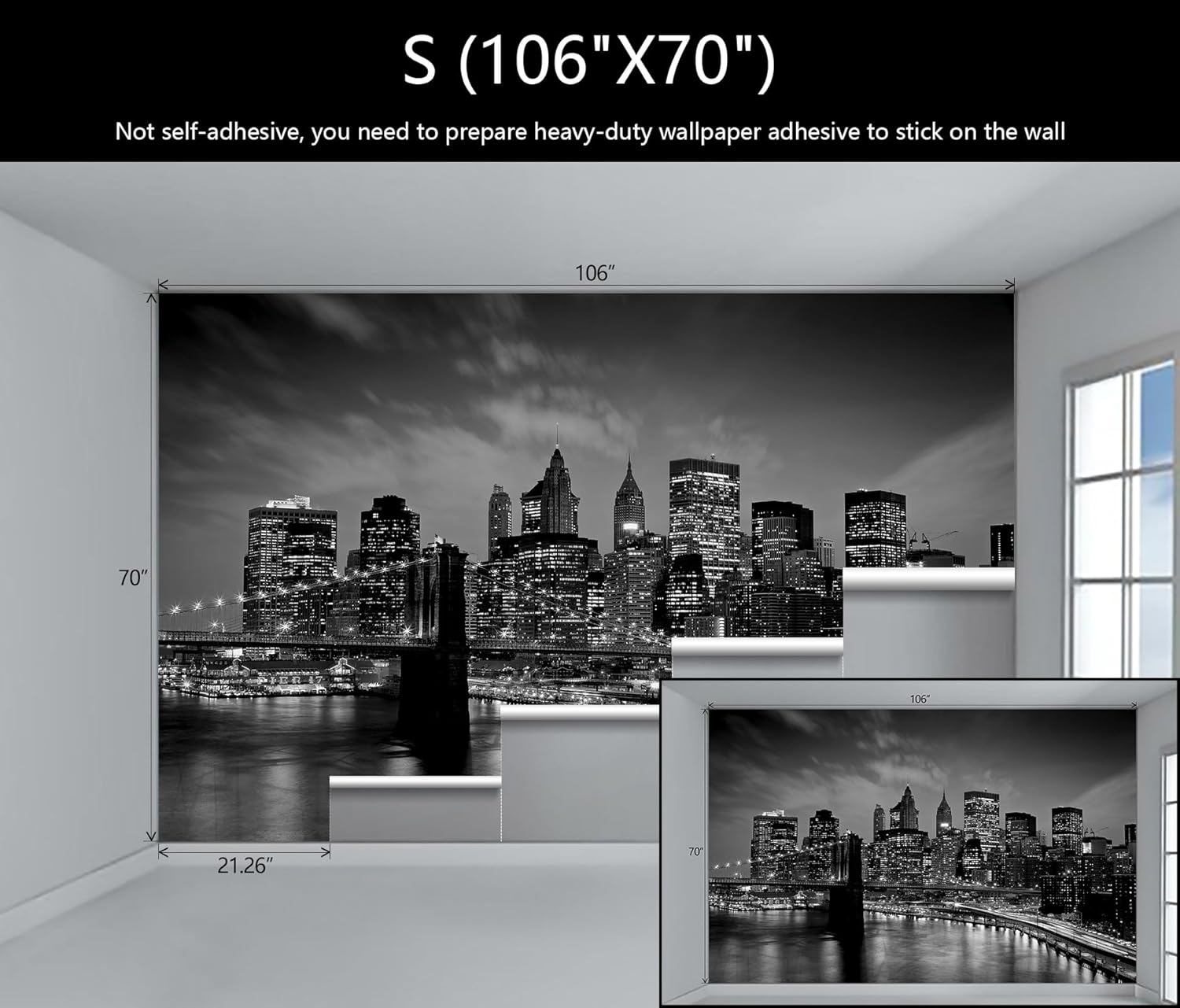 - Warm tip: This mural is not peel and stick, you need to buy your own glue, it is recommended to use Heavy Duty Wallcovering Adhesive.