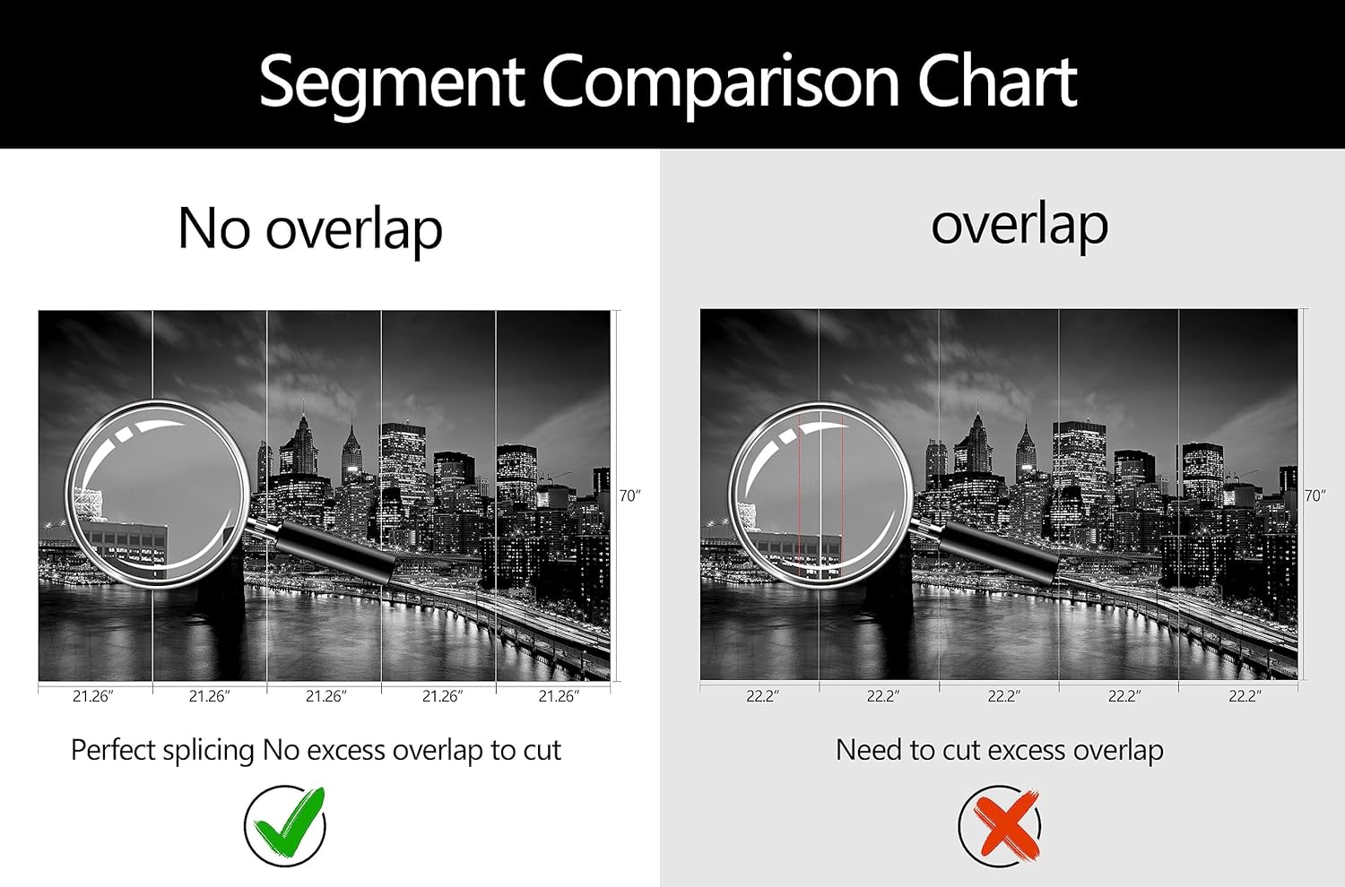 - Mural Size: The total size of this mural wallpaper is 106" x 70" / 270CM x 178CM (W x H), cut into 5 pieces, each measuring 21.26" x 70", for easy installation.