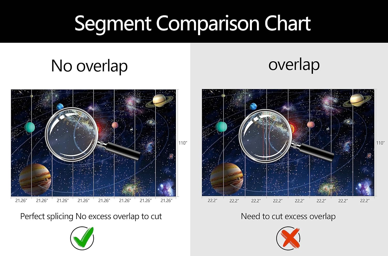 - Mural Size: The total size of this mural wallpaper is 170" x 110" / 432CM x 280CM (W x H), cut into 8 pieces, each measuring 21.26" x 110", for easy installation.