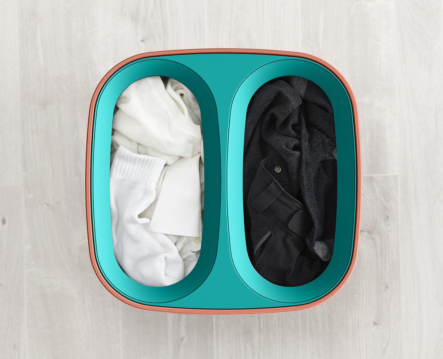 Joseph Joseph Tota Pop 60 liter/15.8 gallon Laundry Hamper Separation Basket with lid, 2 Removable Washing Bags with Handles- Coral/Green