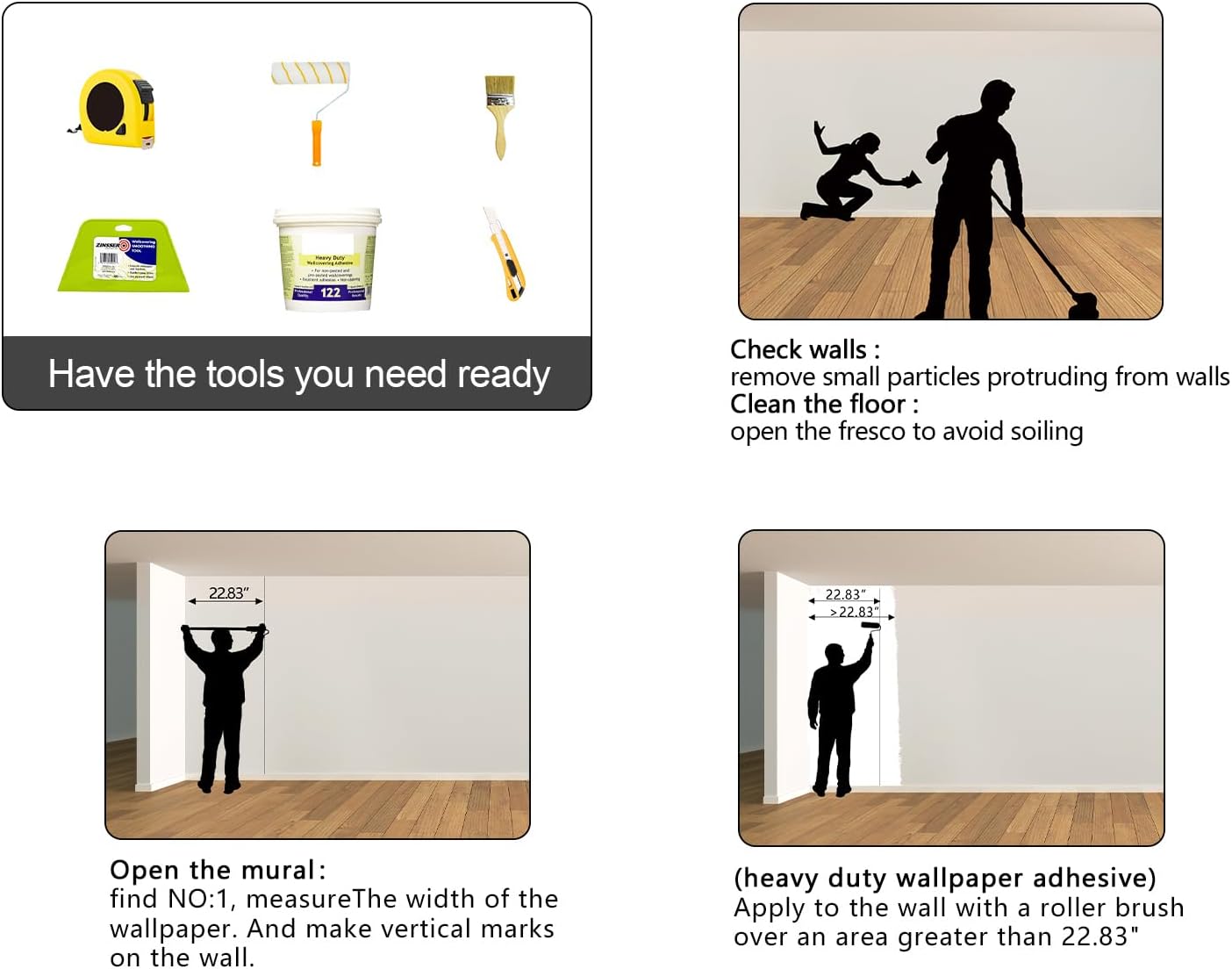 - This mural is It's not Peel and Stick . Additional Purchase required ( thick wallpaper adhesive ) please Check if is the product you need . thanks.