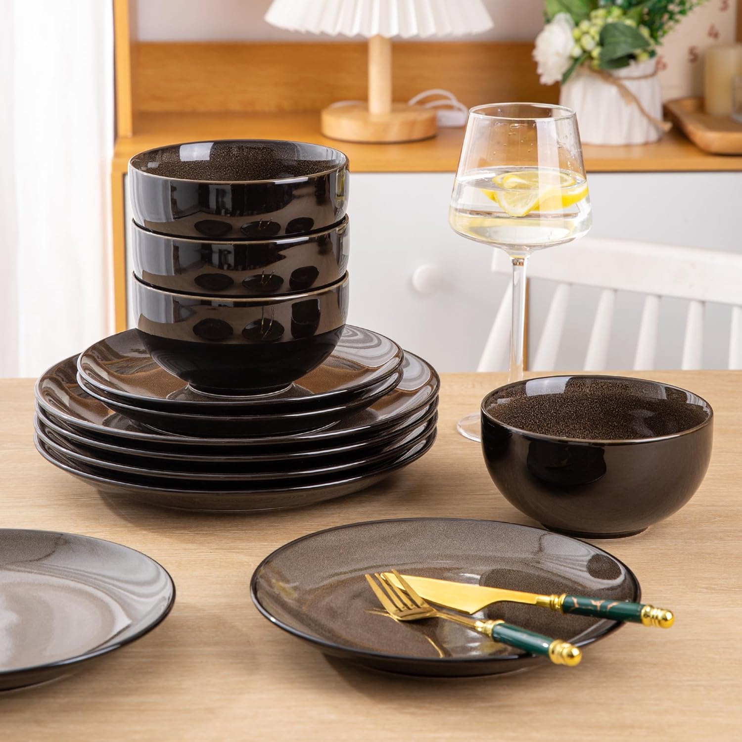 - 【SERVICE FOR 4 】4 pcs of 10.5" dinner plates, 4 pcs of 8.5" salad/appetizer/dessert plates, and 4 pcs of 26 oz soup/cereal/ceramic bowls. It makes a great housewarming gift for newlyweds who appreciate quality and style, or for anyone who has recently moved into a new home or apartment. With this set, you can enjoy your meals in style and create beautiful memories with your loved ones.