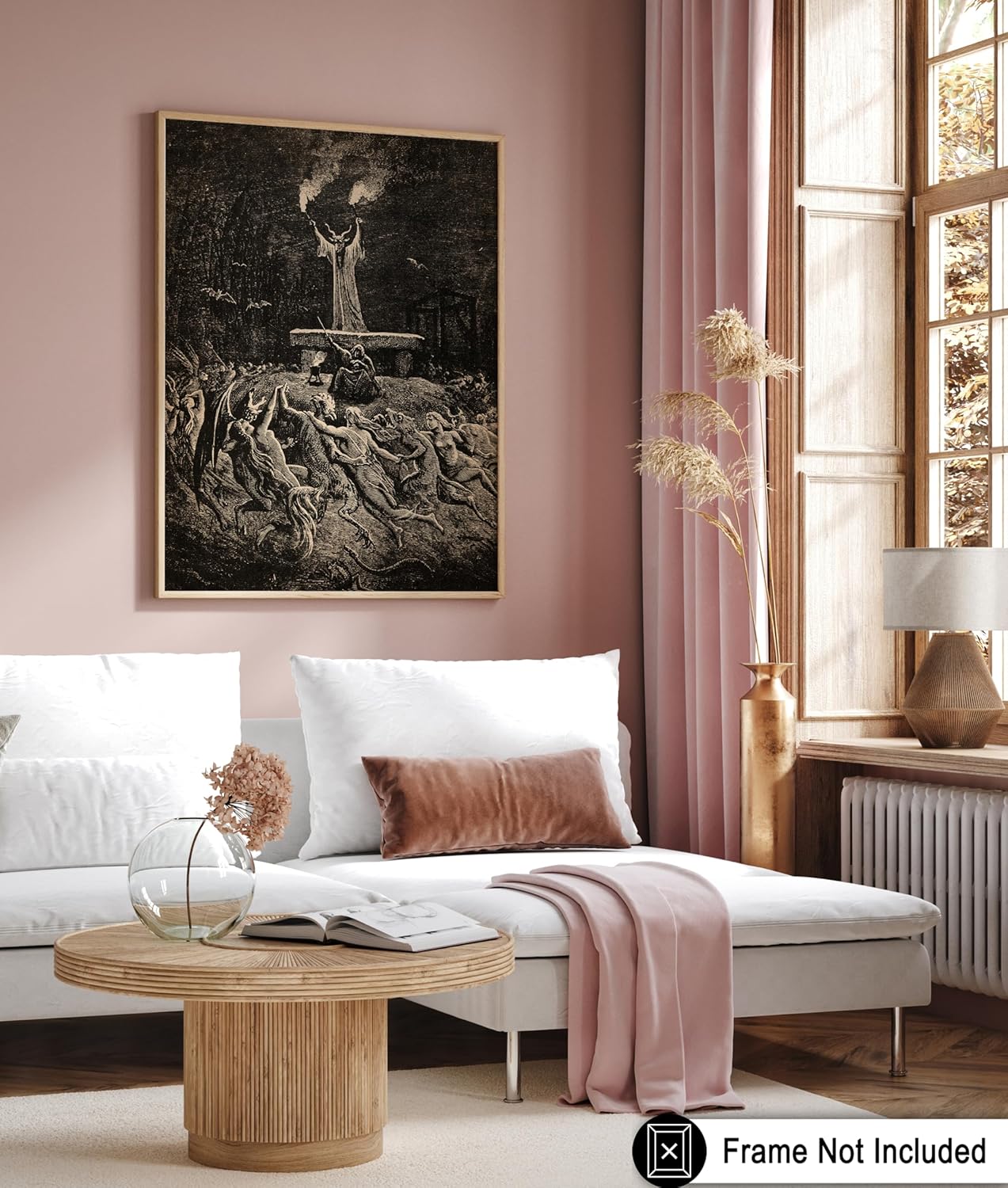 Poster Master Vintage Gustave Dore Poster - Retro Dance of Sabbath Print - Witchcraft Art - Halloween Art - Gift for Him & Her - Gothic Decor for Dorm, Living Room or Bedroom - 16x20 UNFRAMED Wall Art
