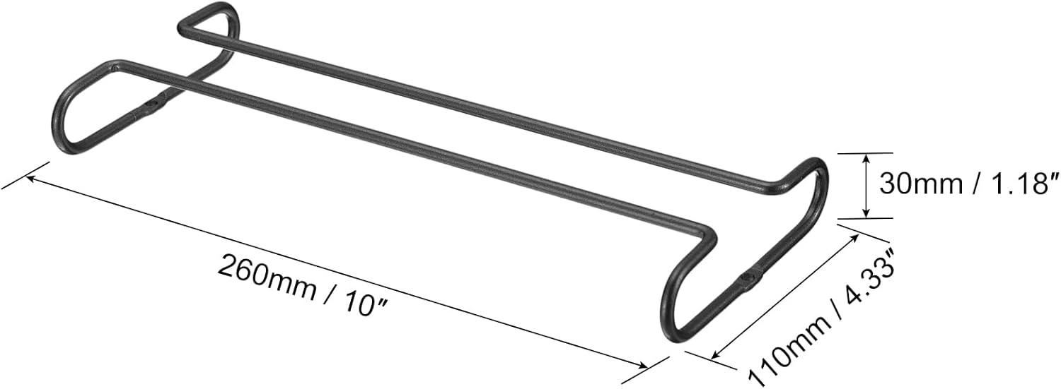 - [Style and Size] This wine glass rack is a single-row metal wine holder; Size: 260x110x30mm/10"x4.33"x1.18"(LxWxH); Material: Stainless Steel; Opening Diameter: 5.5mm; Color: Black; Products Include: 4pcs x Under Cabinet Wine Glass Holder