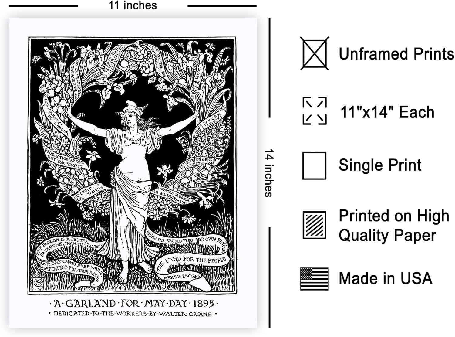 Poster Master Vintage Walter Crane Poster - Retro A Garland for May Day Print - Socialist Art - Gift for Him, Her, Men, Women - Wall Decor for Home, Office, Living Room - 11x14 UNFRAMED Wall Art