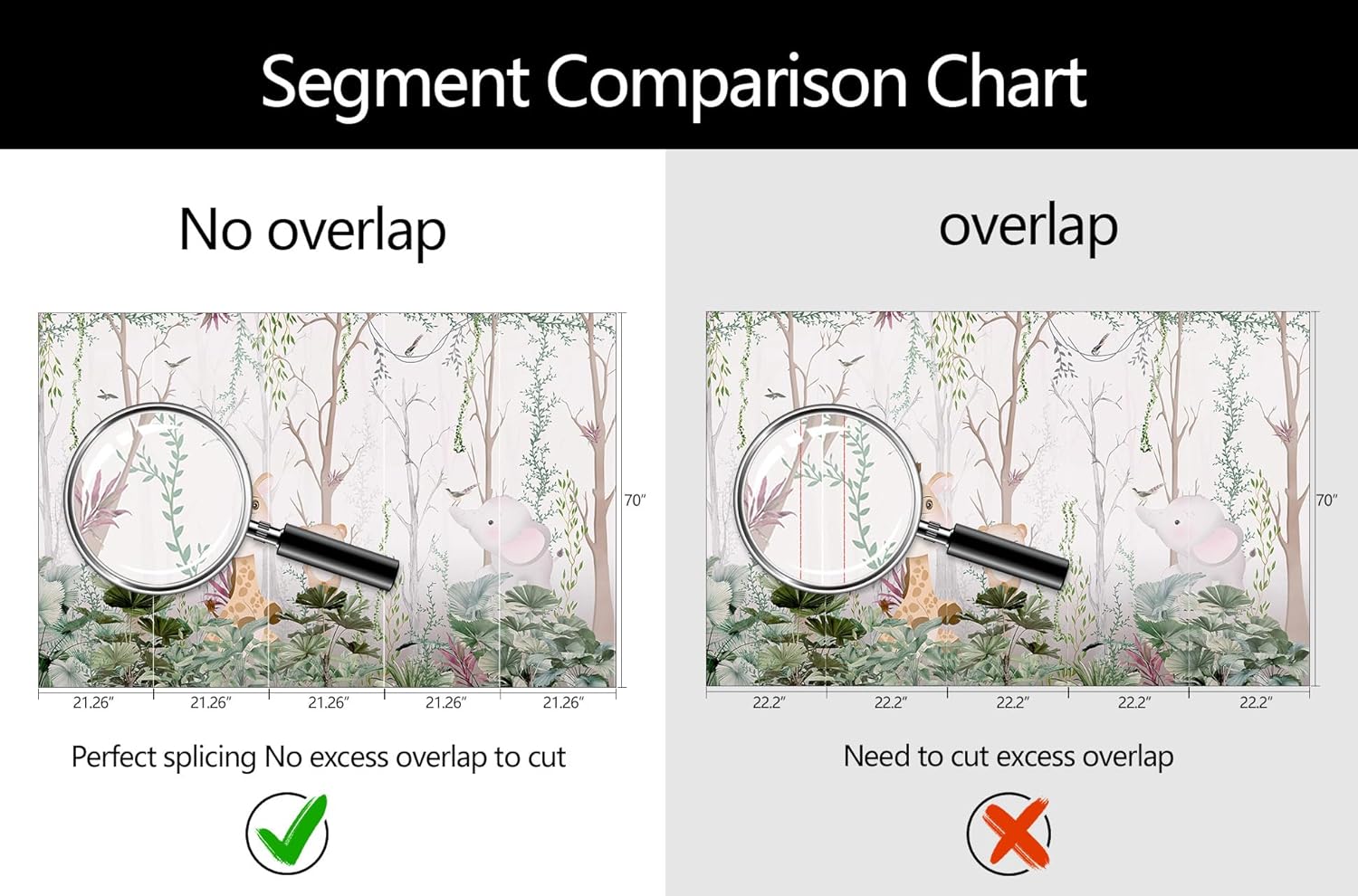 - Mural Size: The total size of this mural wallpaper is 106" x 70" / 270CM x 178CM (W x H), cut into 5 pieces, each measuring 21.26" x 70", for easy installation.