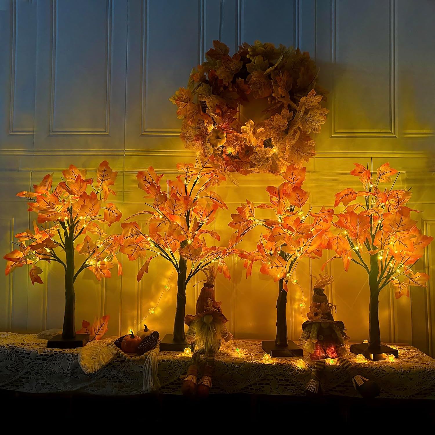 4Pcs Fall Lighted Maple Tree Decor 2FT96LED USB&Battery Operated Artificial Autumn Light up Trees Lights for Harvest Thanksgiving Decorations Tree Lights Table Light House Party Indoor Room Home Deco