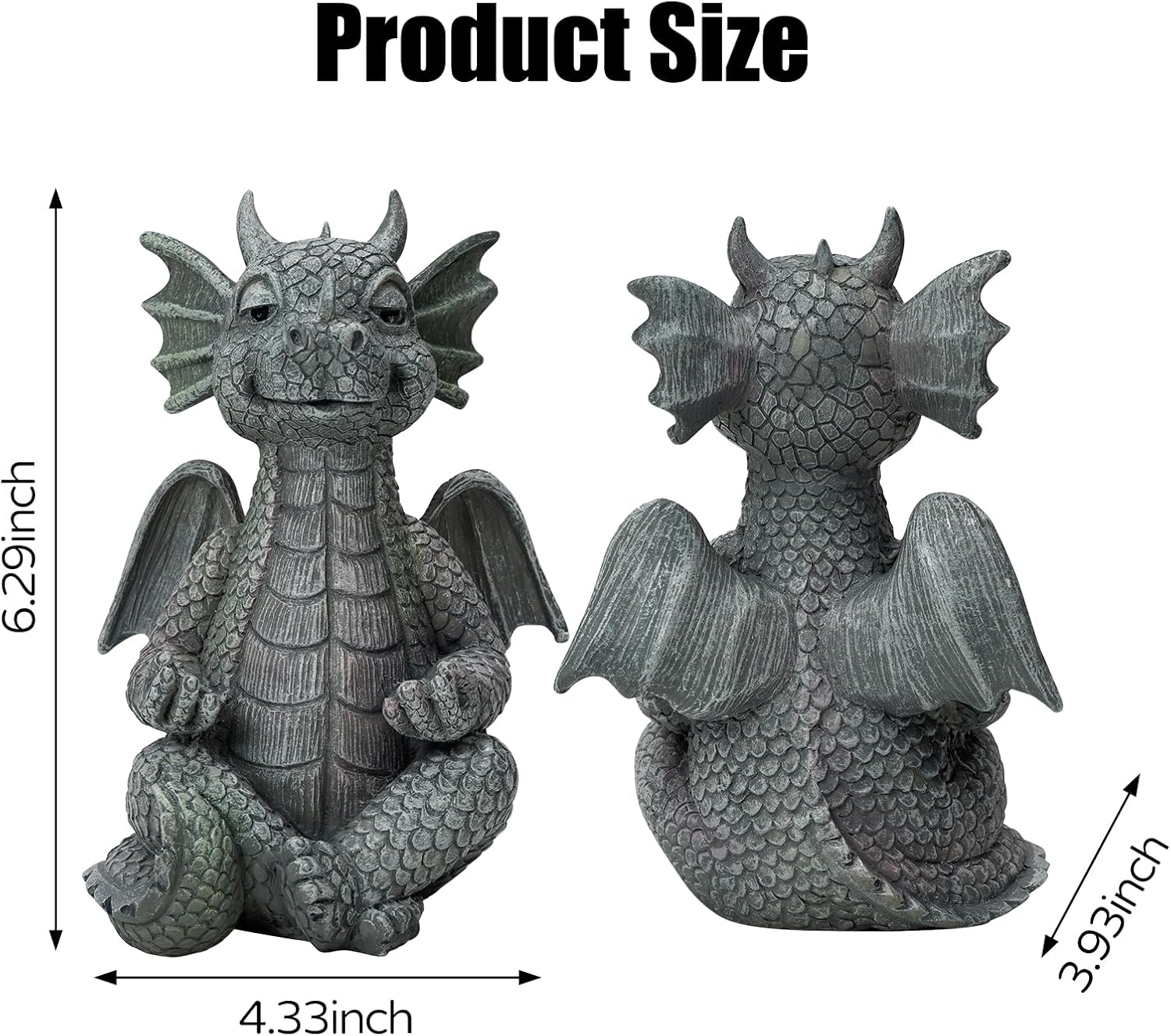 - 【Statue Size】The resin meditation dragon sculpture size is about 4.33 x 3.93 x 6.29 inches, perfect decoration for outdoor and indoor home, making your home and garden look more lively.
