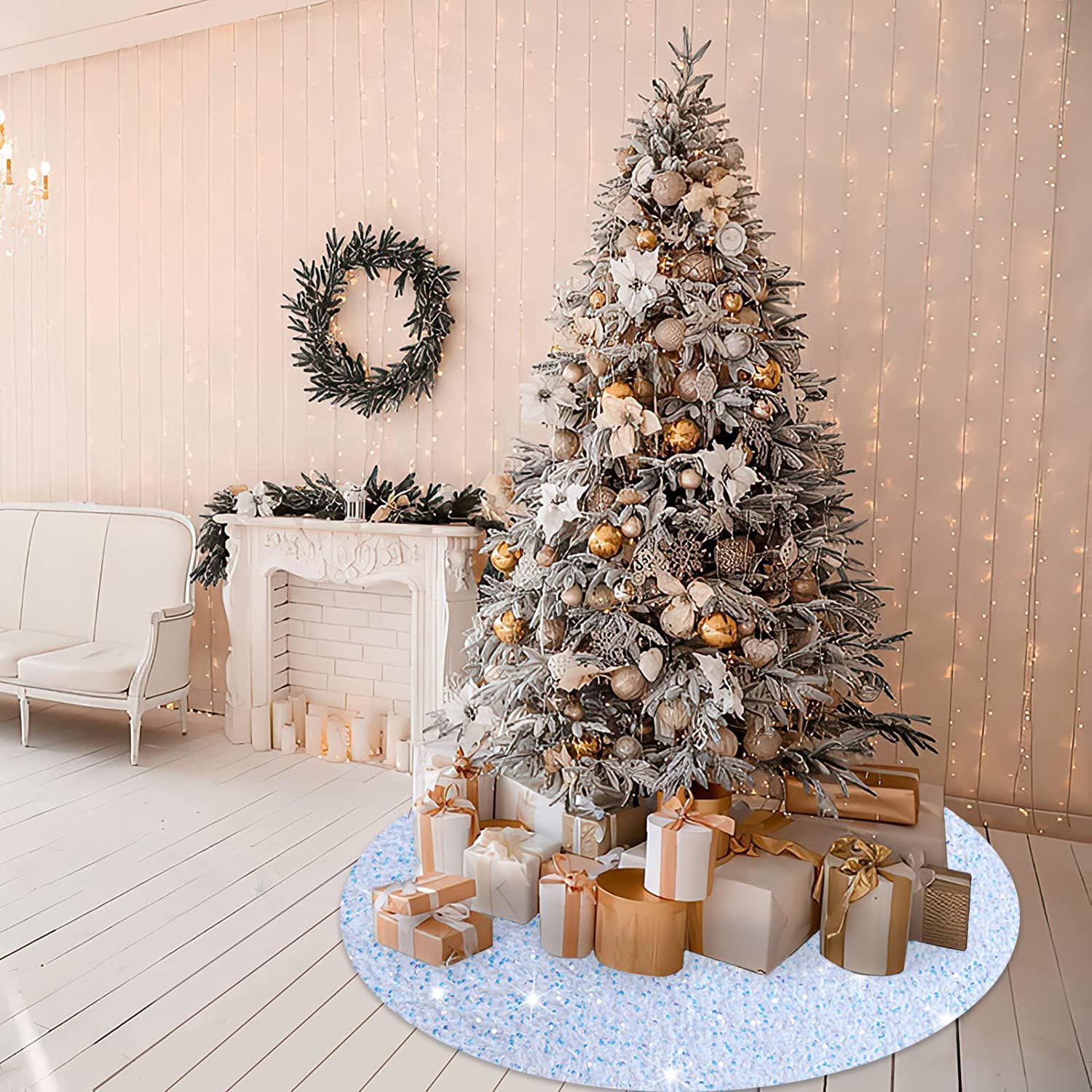 - ❄️【Sturdy Material - Sequin Christmas Tree Skirt】Our Christmas tree white skirts are made of premium 5mm sequin fabric and thick velvet material, which can show bright color at any angle. Different from the traditional sequins trees skirt, this Santa tree skirt won't fall off sequins, more elegant and shiny, adding festive fun to your home.
