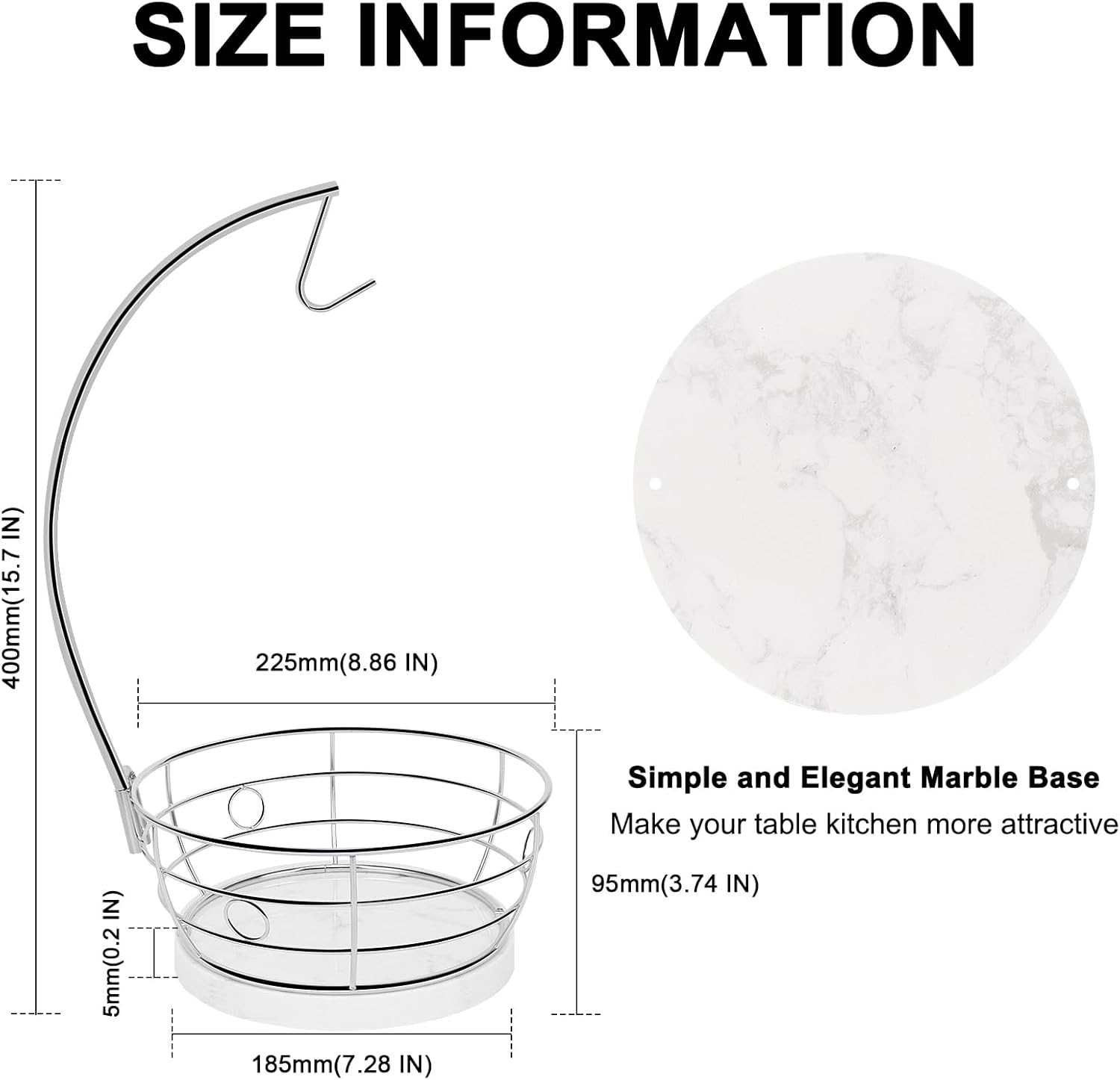 - BEAUTIFUL MARBLE BASE: Each marble base has an unique charming color and texture. Its elegant and stylish look makes the banana hanger with fruit basket more attractive. Heavy weighted design of marble base is stable to protect banana hanger from falling when take out bananas.