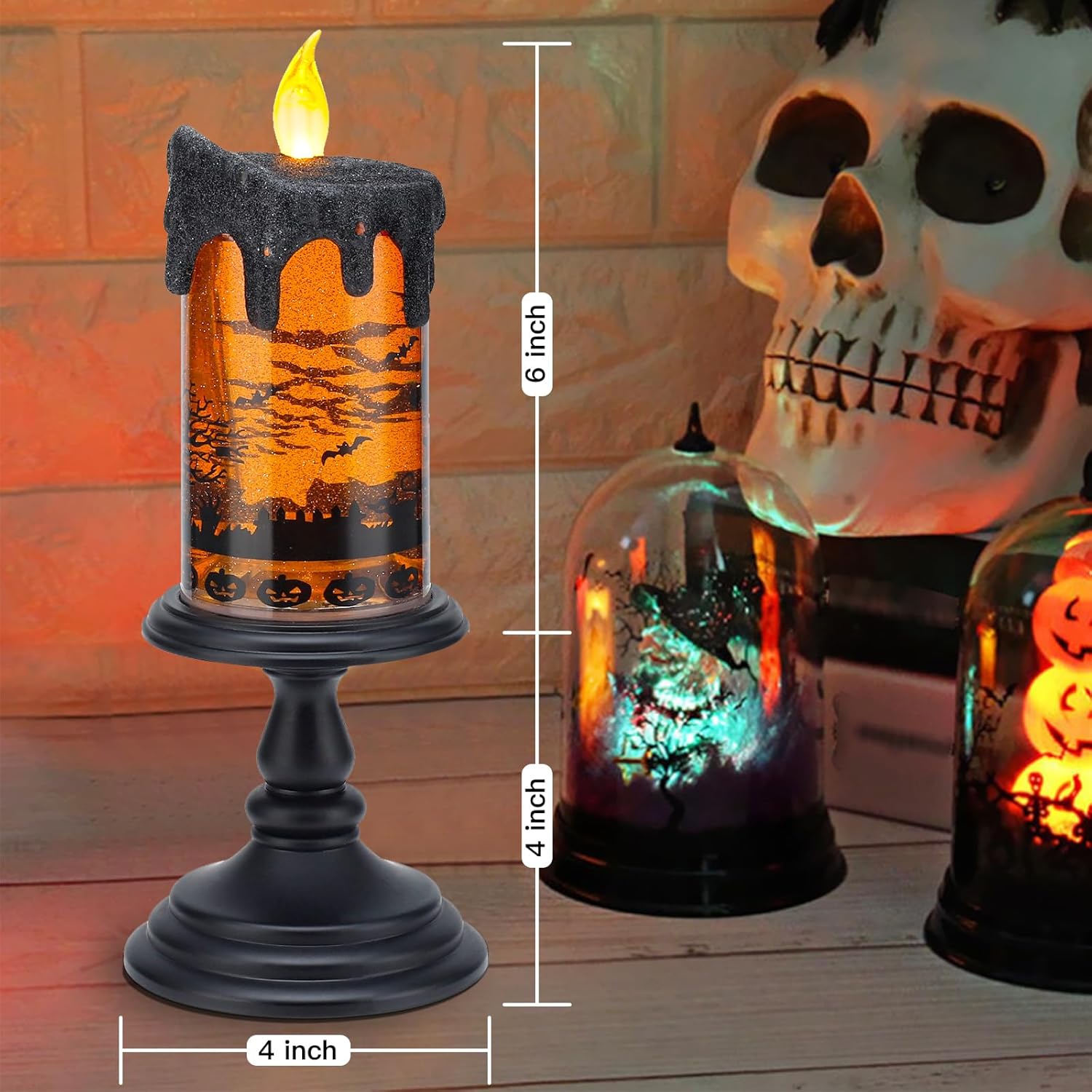 Halloween Snow Globe Candles Lighted Lamp, Lighted Flameless Candles with Water Glitter Swirls and Spooky Moving,Battery Operated