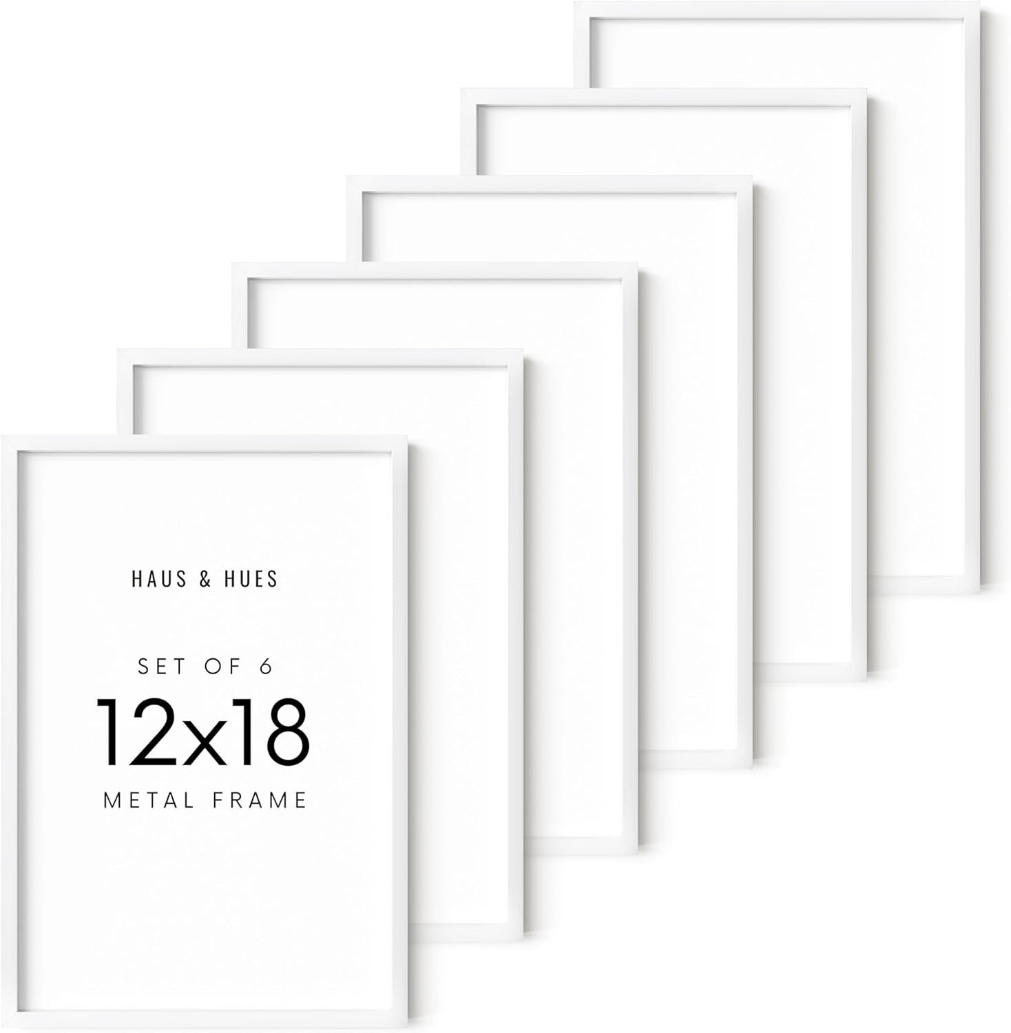 HAUS AND HUES 12x18 White Metal Picture Frames - Features Premium Aluminum, Vertical & Horizontal Hang, Shatterproof Plexiglass - Perfect for Home, Room, Office (12x18 in, White, Set of 6)