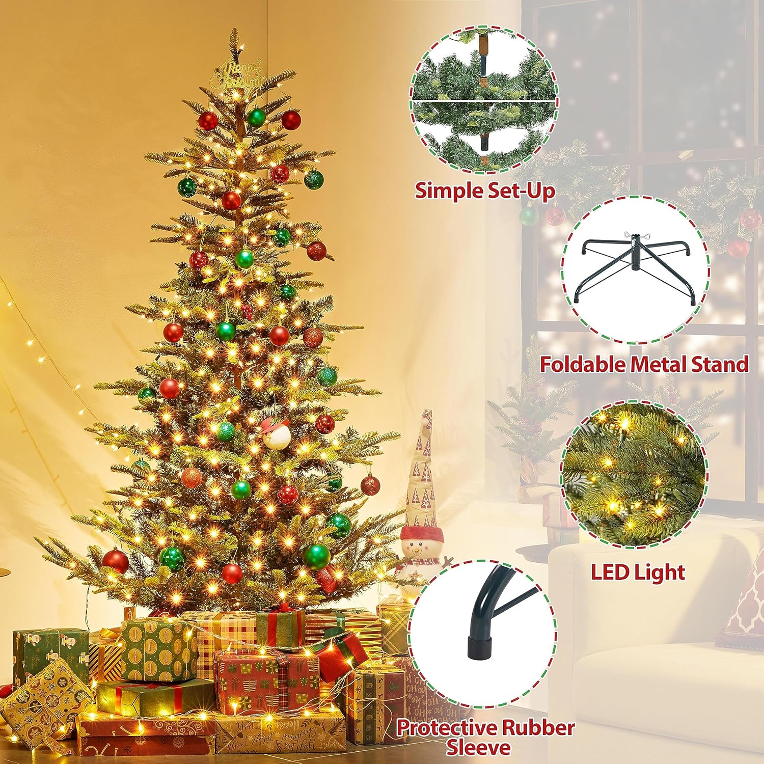 - PE & PVC Materials: Made from durable PVC and PE, this Christmas tree offers a realistic look. The faux branches prevent shedding, unlike real trees, ensuring long-lasting beauty and easy maintenance