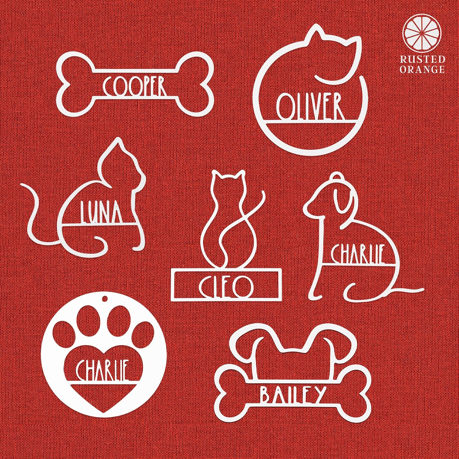 - 6" Dimensions: Bone - 3.75" tall x 7.75" long | Cat Curled Up -5" tall x 5.65" wide | Cat Side Profile - 5.5" tall x 5.6" wide | Cat Sitting 6.8" tall x 5.7" wide | Dog Side Profile - 5.6" tall x 5.9" wide | Dog with Bone 4.2" tall x 6" wide | Paw Print 5.8" tall x 5.8" wide