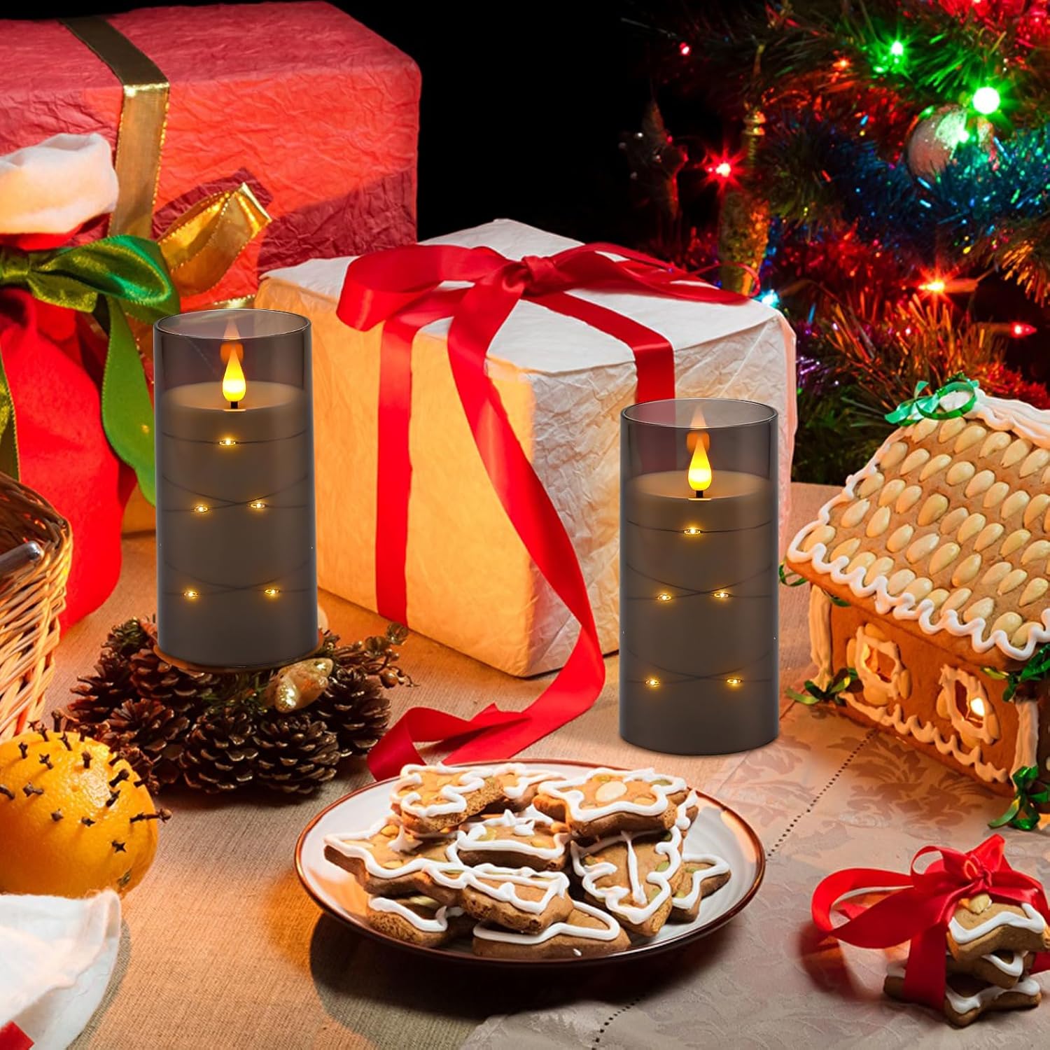 - [PERFECT DECORATION] The special star lights make these flameless pillar candles a great addition for holidays or special occasions. The ability to turn on/off the star lights at will makes them perfect for decorating your home and controlling the ambiance and mood of any occasion or environment without the hassle of traditional candles. Enjoy every moment with these LED flickering candles.