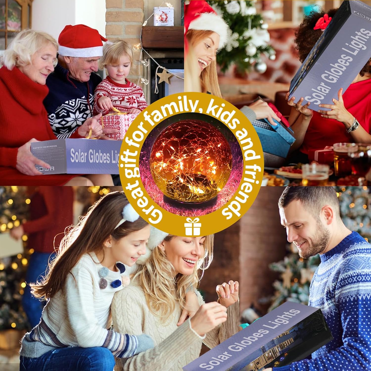 Solar Globe Lights Outdoor Waterproof - Cracked Glass Ball Lights for Garden, Patio, Yard, Lawn and Backyard Decor - Decorative Orbs for Outside