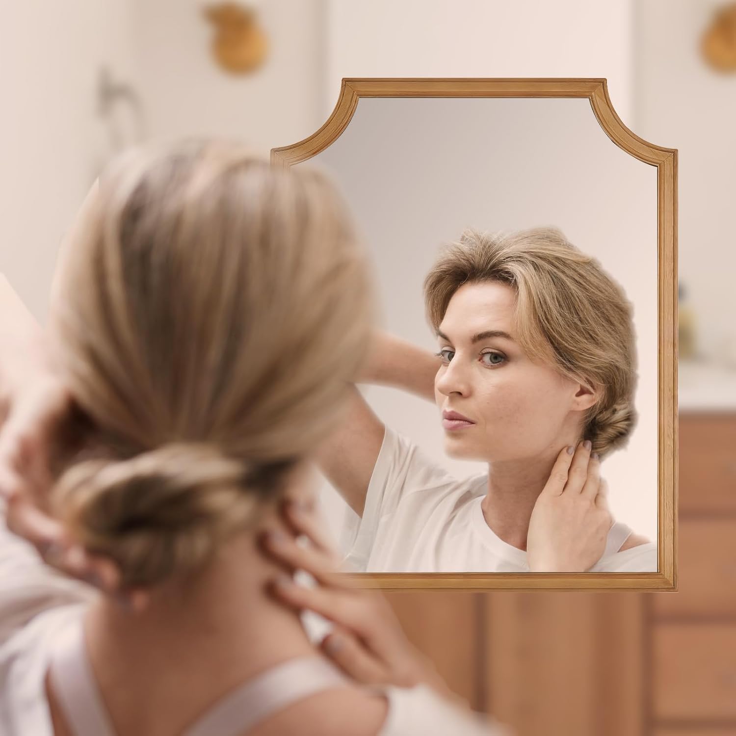- Sturdiness Frame Design: This scalloped wall mirrors are handcrafted with care and attention to detail and design, High-Quality solid wood frame, and Mirror Materials to guarantee the sturdiness and consistent aesthetic beauty of the design.
