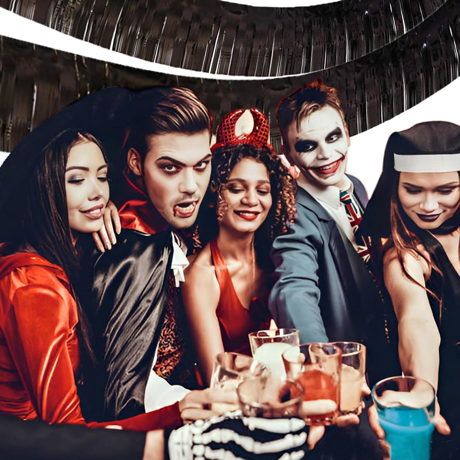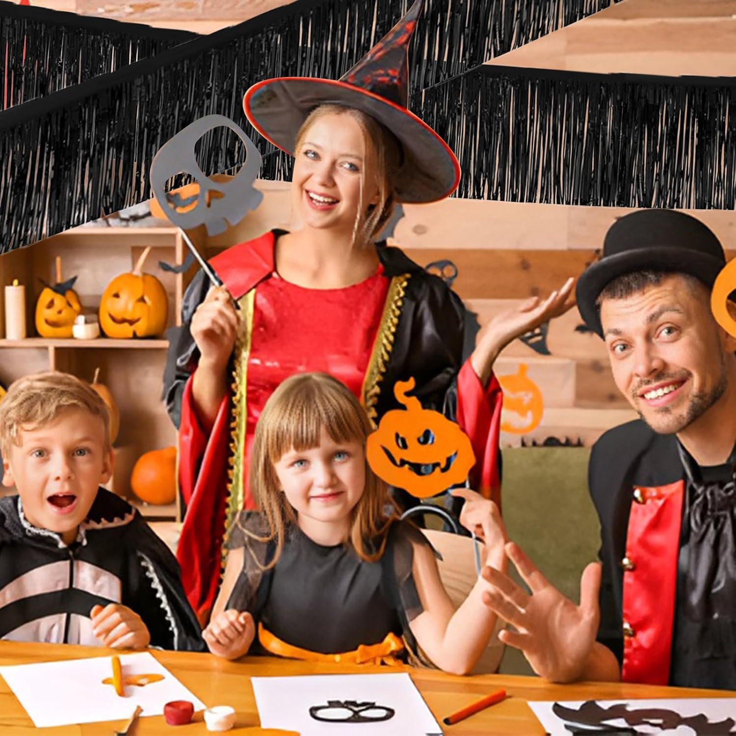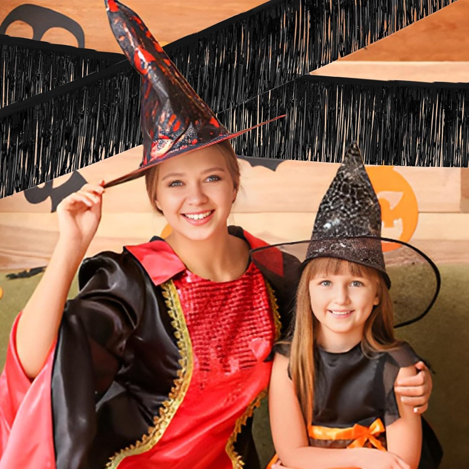 Black Foil Fringe Garland 10FT 2packs, Metallic Foil Tinsel Fringe Banners for Parade Float Decorations Wedding, Birthday Party Graduation (Two Black)
