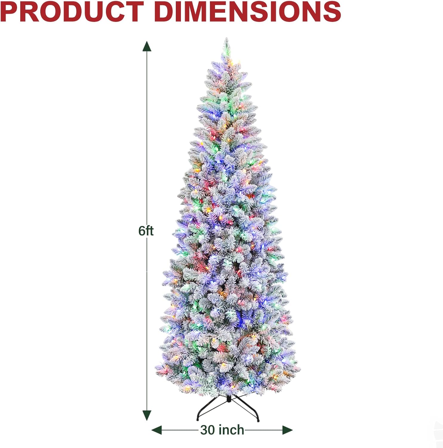 - 【NATURAL & Full LOOK】Measures 6 feet tall, 30 inches diameter at the base. Featuring snow sprinkled branch tips, creates a wintry feel and 544 branch tips for a full and life-like look, this slim flocked Christmas tree can be easily fluffed and shaped for a splendid and natural display and also provides abundant space to showcase your favorite ornaments.