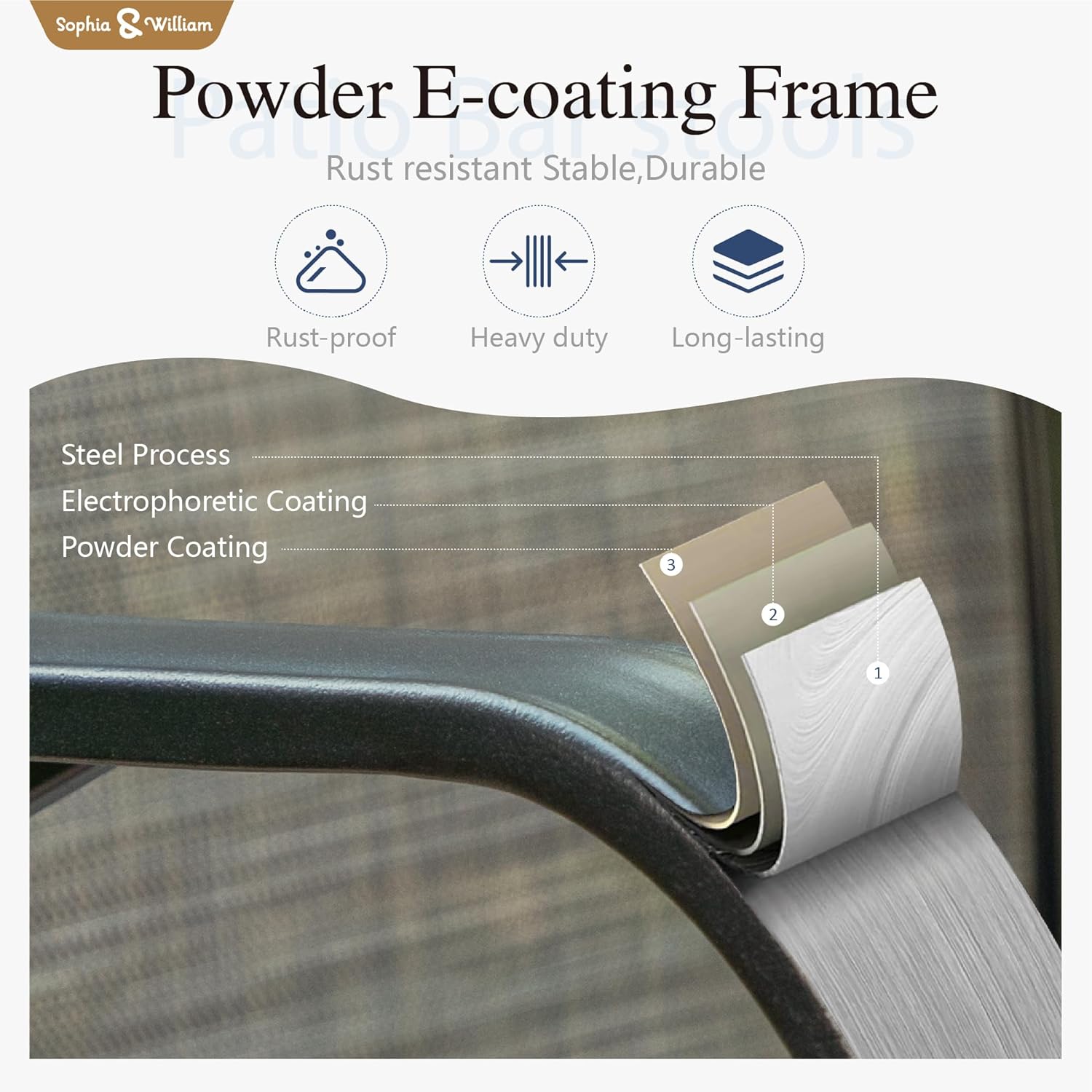 - 【Built to Last】Crafted for lasting enjoyment, this patio set boasts a sturdy construction and weatherresistant ecoating technology that stand up to the elements. Easy to clean and maintain