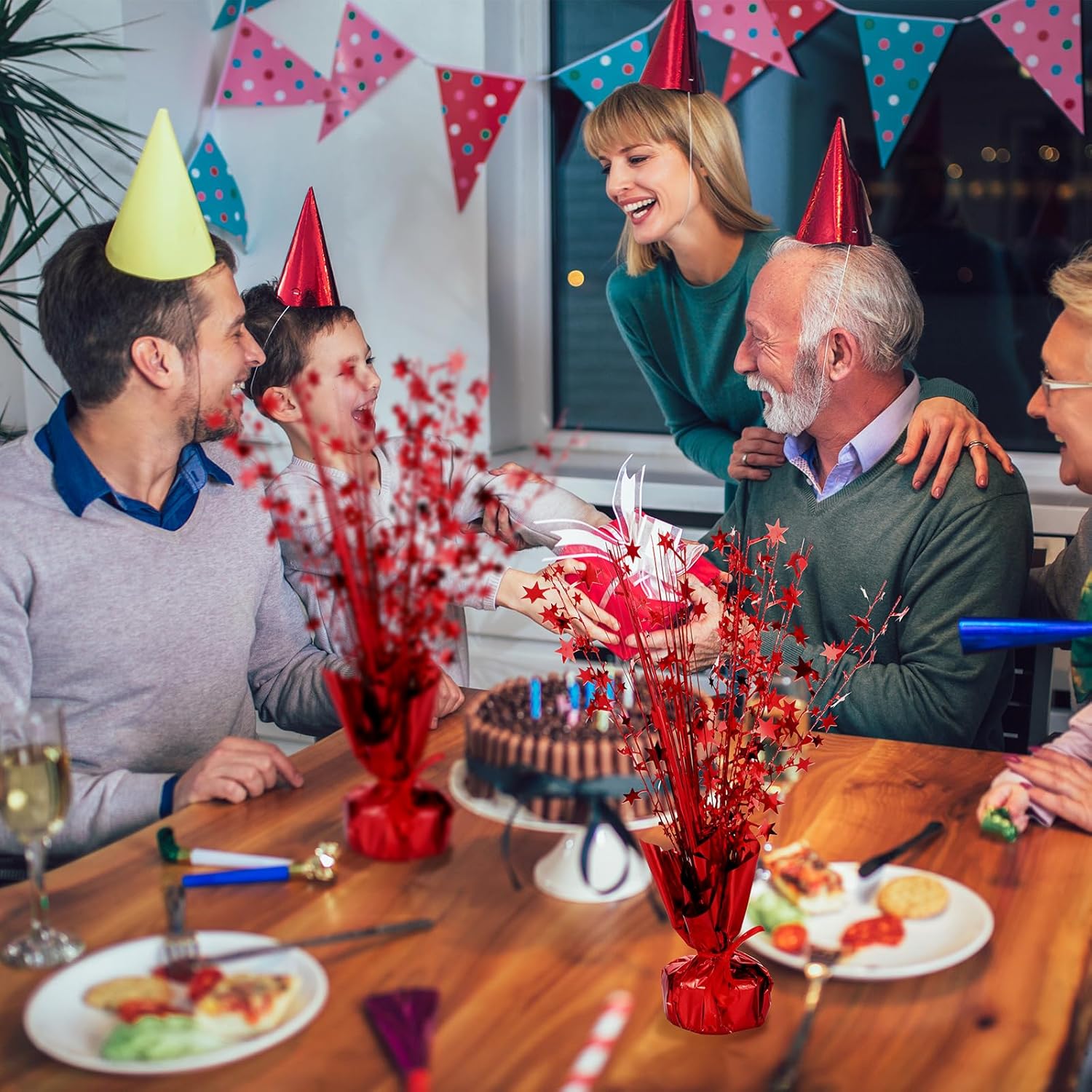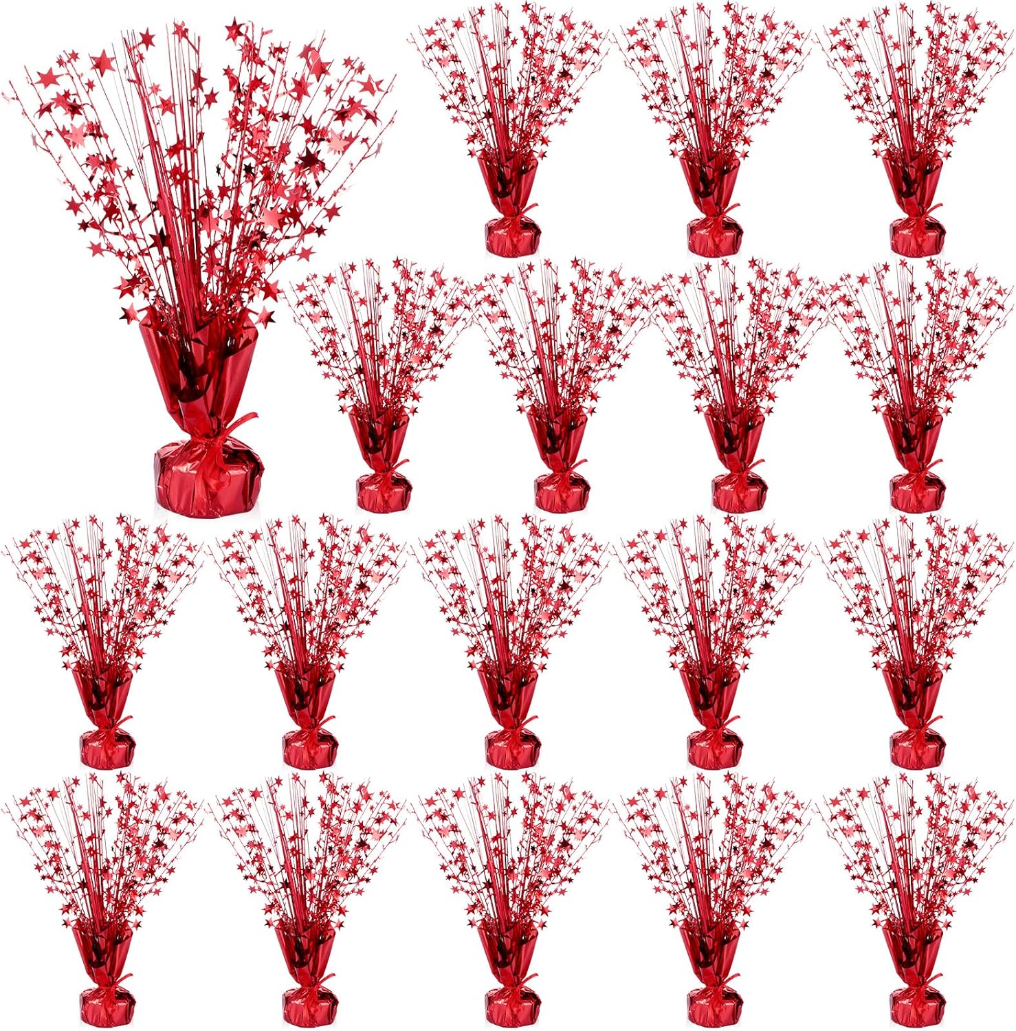 - Comprehensive Package for an Elegant Setting: this set ensures to meet your decoration needs as it includes 18 red foil spray centerpieces; With these star centerpieces for tables, you can efficiently create a visually appealing atmosphere for your family dinner or holiday party; The stunning red color of these bulk centerpieces adds a vibrant touch to your decor making it unforgettable