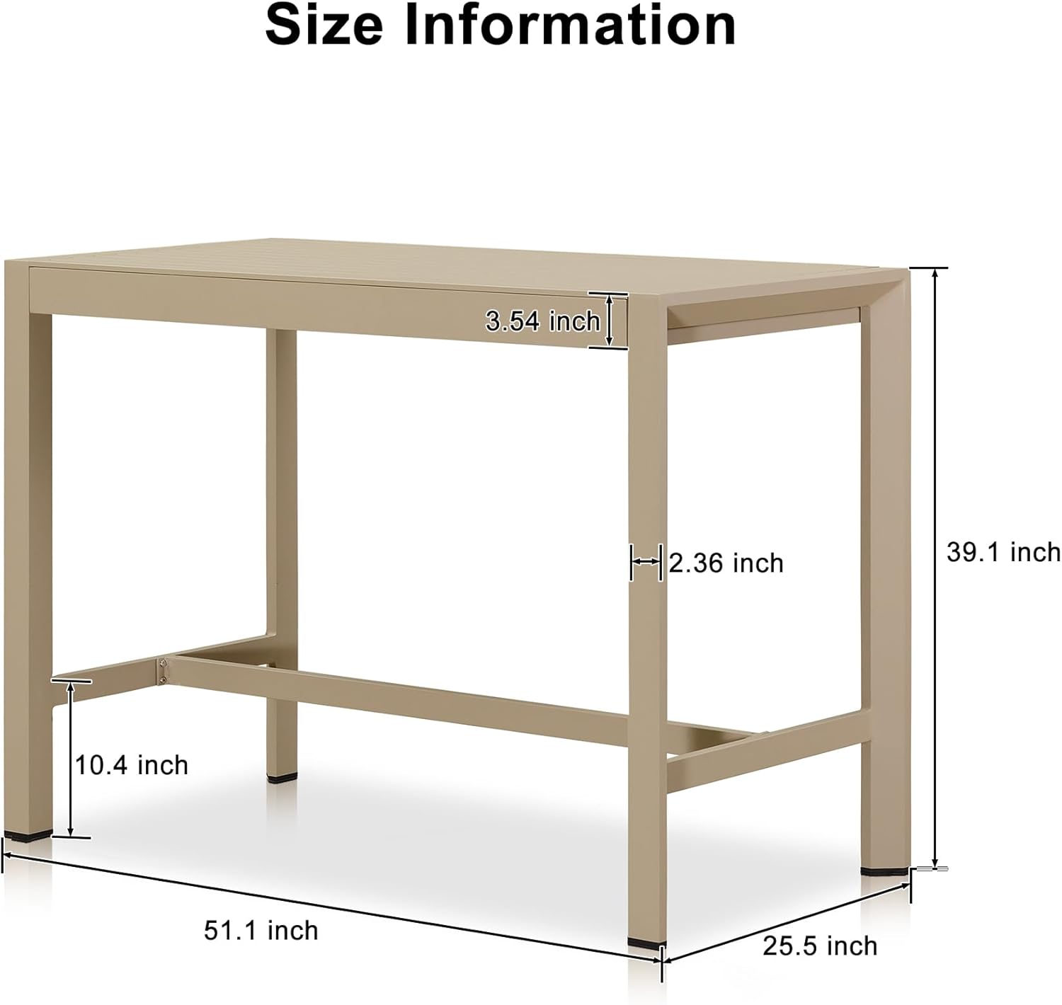 - Dimension: Include 1 tall bar table (51.1 "L x 25.50 "W x 39.1 "H). Available in 3 colors, including teak, grey, and champagne. which can be purchased together with PURPLE LEAF outdoor bar stools of the same color to make a complete set.