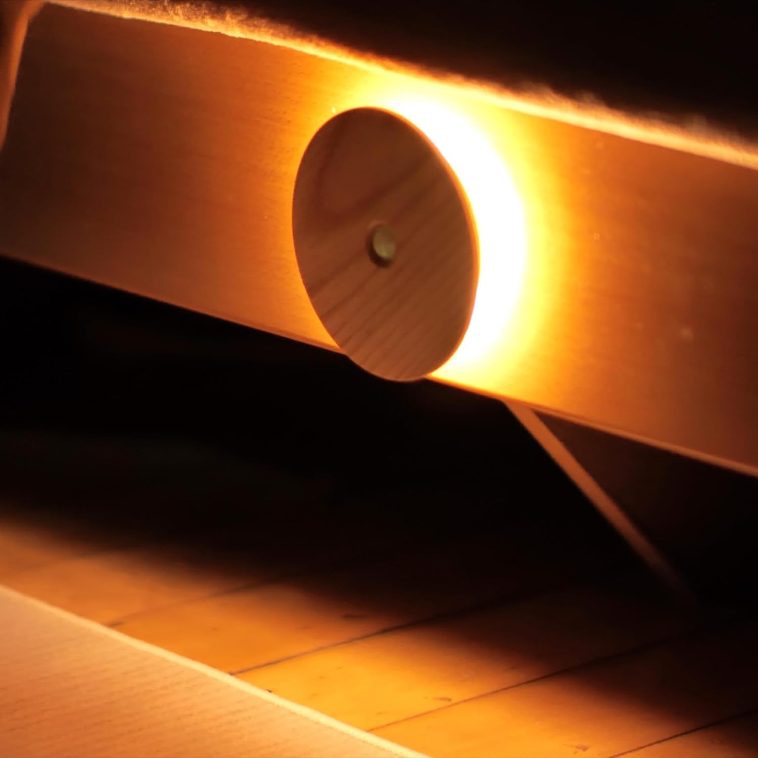 - 【WOOD MOTION SENSOR LIGHT】This lamp made of the wood cover and ABS motion sensor light,this night light cover is real wood,everyone has its own wood grain and arc,create a perfect art,is a great decoration in your home or office, showing you is a perfect artwork.Compact size:4.25" x 0.98"/10.8 cm x 2.5cm look even more elegant.Be ready to get compliments from neighbors!Perfect for for bedroom, counters, hallway, drawers, and any other dark place and so much more.