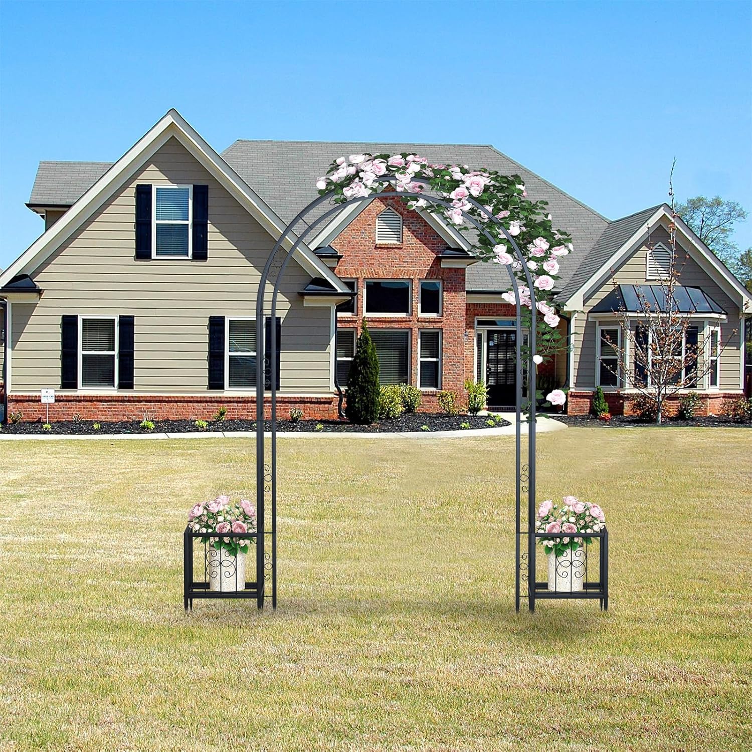 - 【Perfect for Outdoor Use】Our metal arch is mainly designed as an eye-catching decoration on garden, yard, patio or park. You can place it in front of your doorway or the pavement, making a perfect entry out of it. Or you can use it as a decorative backdrop for your wedding to bring you wonderful memories.Arch size: 80" wide x 88.6" high.