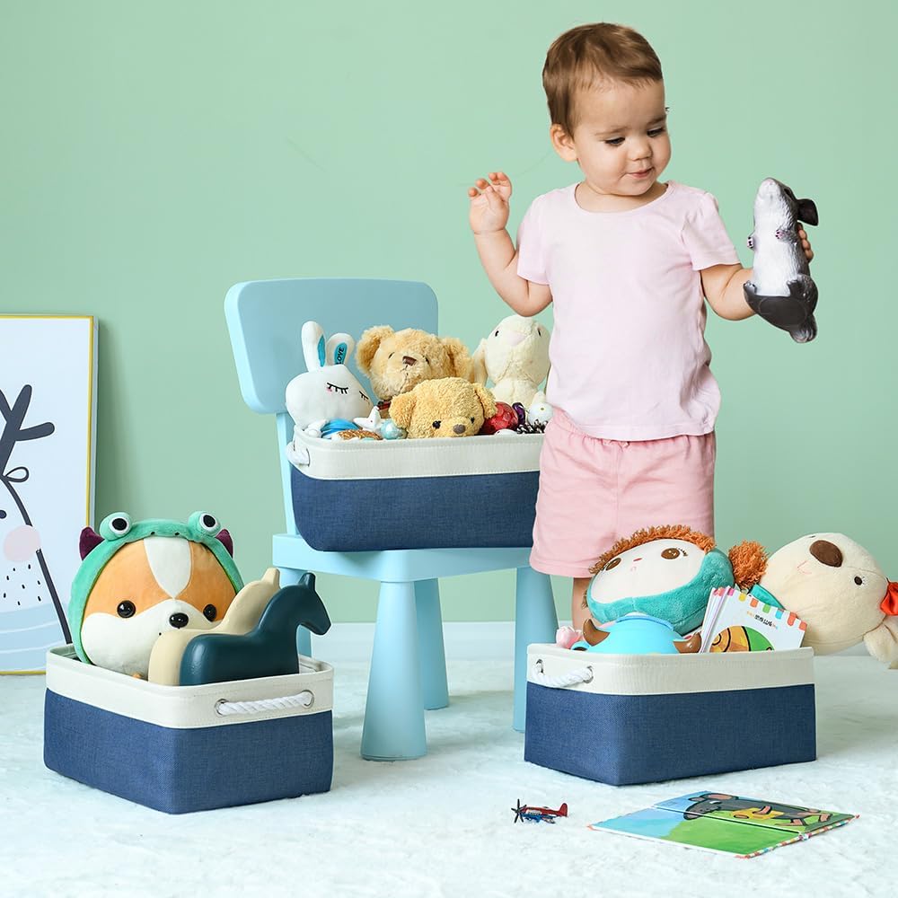 TheWarmHome Storage Bins for Shelves - 1 Pack 13.8x9.7x6.7 inch Collapsible Storage Basket for Organizing, Dog Toy Bin for Closet Organizer laundry Cloth Nursery (White & Jean Blue)