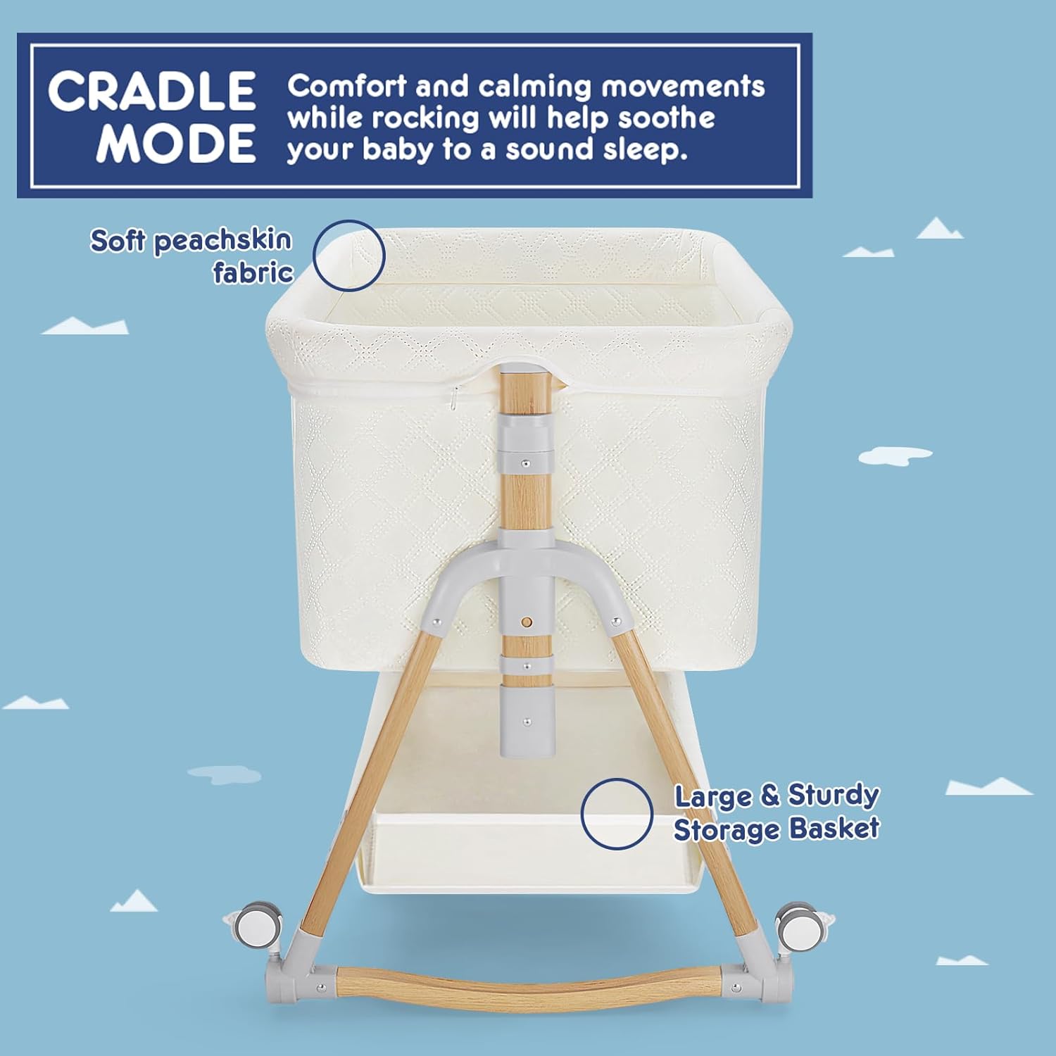 - 3 in 1 Convertible Bassinet: HARPPA bassinet can be used as a bedside bassinet、rocking bassinet or standalone baby bassinet. Mimicking gentle parental rocking to create a tranquil sleeping environment for the baby