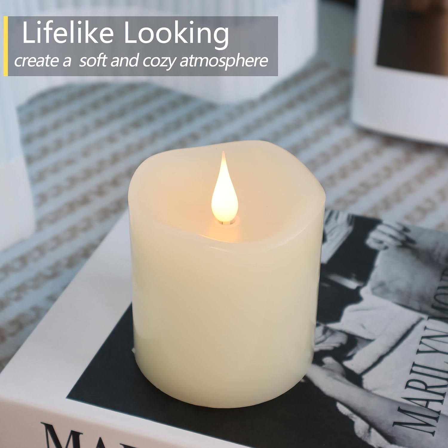 Flameless Candles Battery Operated with Timer, 3D Moving Flame Flickering, Last 600+ Hours Battery Candles, 3" x 4" Ivory Real Wax Electric LED Candle for Wedding Party Decorations