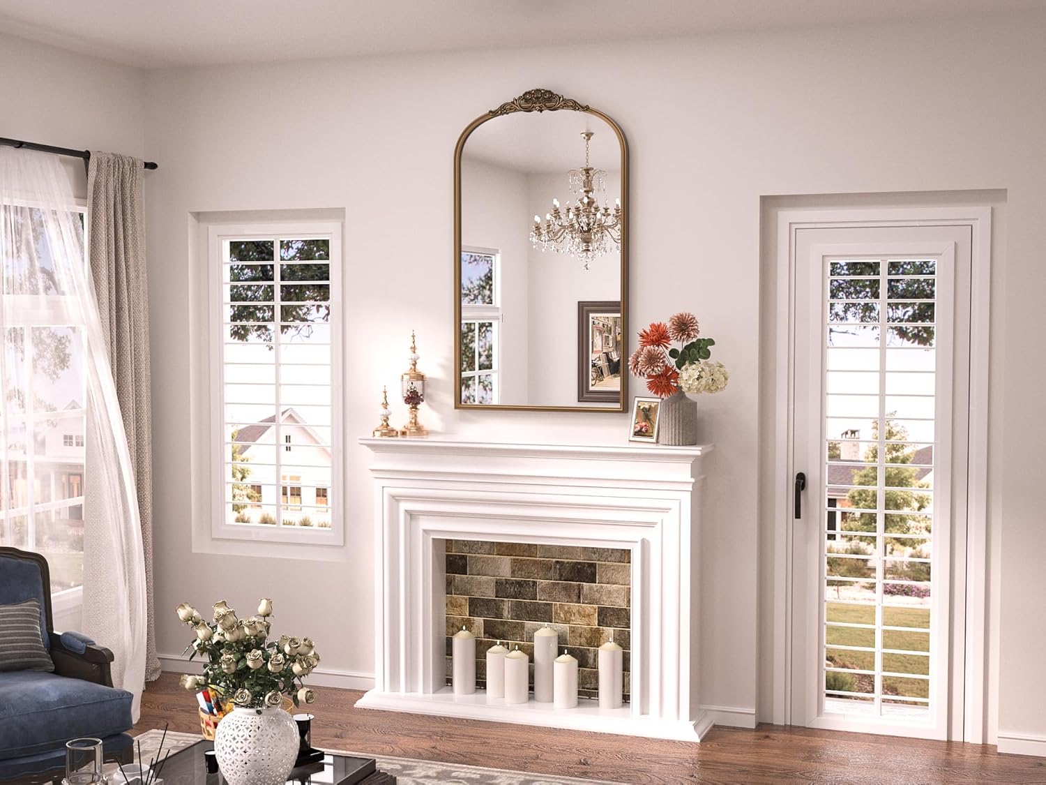 - 【Architectural Craftsmanship, Built to Last】Forged from a robust metal framework, this Arched mirror balances delicate beauty with unwavering durability. The hand-rubbed antique finish deepens its character, casting a warm, museum-worthy glow that enriches modern and traditional interiors alike. 〈The frame’s patina shifts subtly in varying light – from golden warmth in daylight to enigmatic depth under evening lamps – making every interaction with this piece a discovery.〉