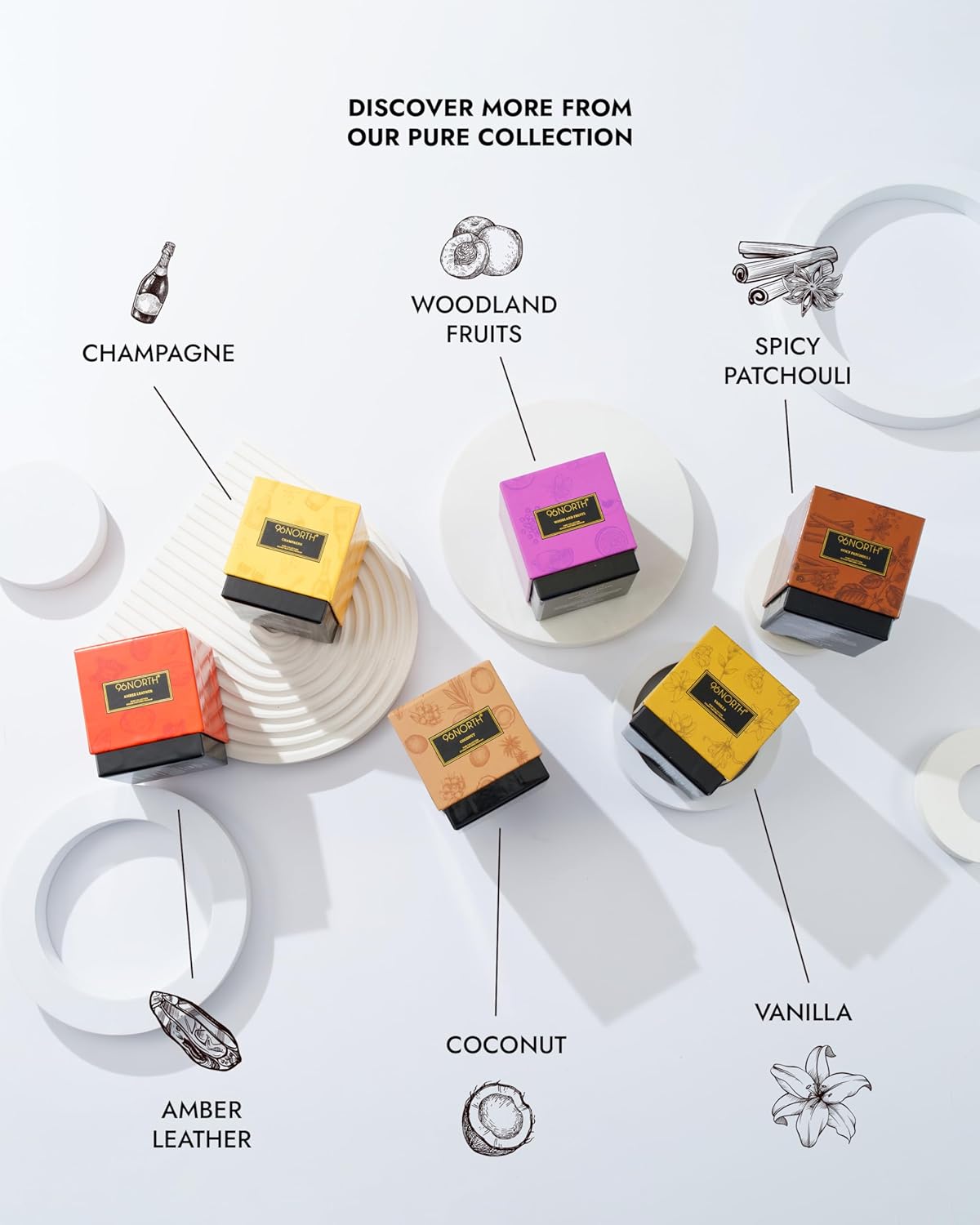 - 96NORTH's Pure Collection: An exclusive fragrance concentration technology allows our perfumers to craft innovative scents using only 10% of the typical dosage without losing strength or quality. This lessens the environmental impact through a smaller carbon footprint and less use of chemicals and raw materials
