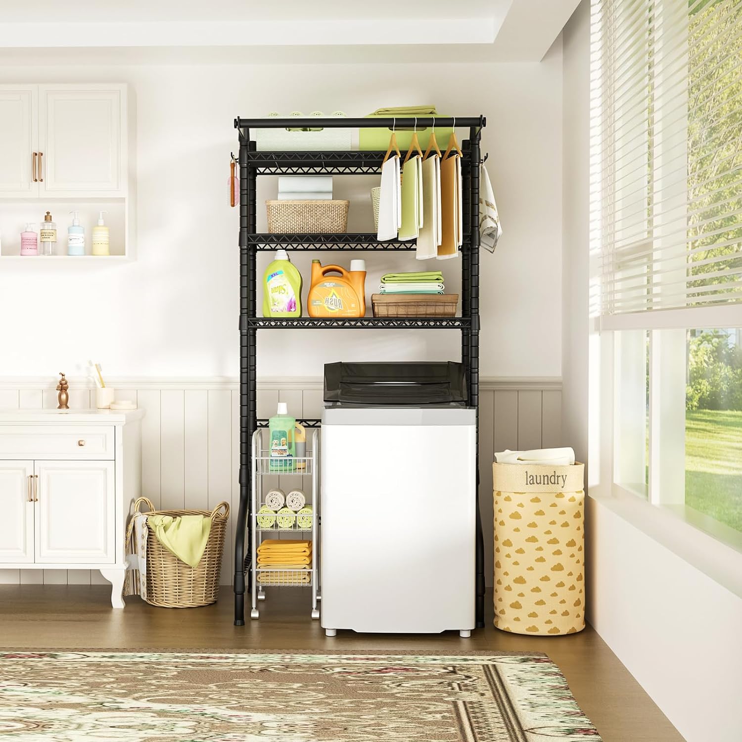 - [Easy to Install]: Following the detailed instruction manual and assembly video can install the laundry room organization quickly. Any issues can contact us at any time