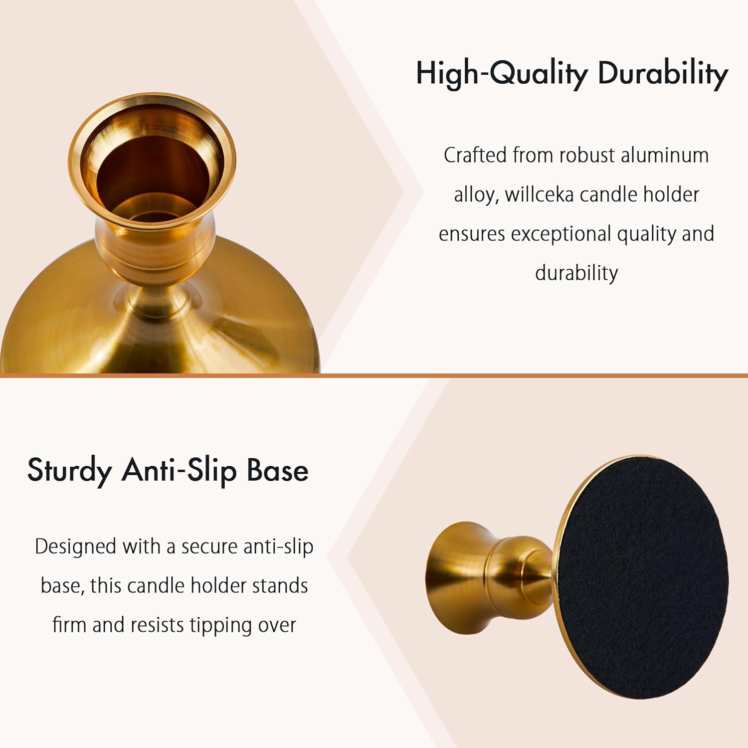 - There's nothing like the soft, warm light of candles to make your home feel cozy and elegant. Add a touch of modern glamour to your home with WILLCEKA candle stick candle holders