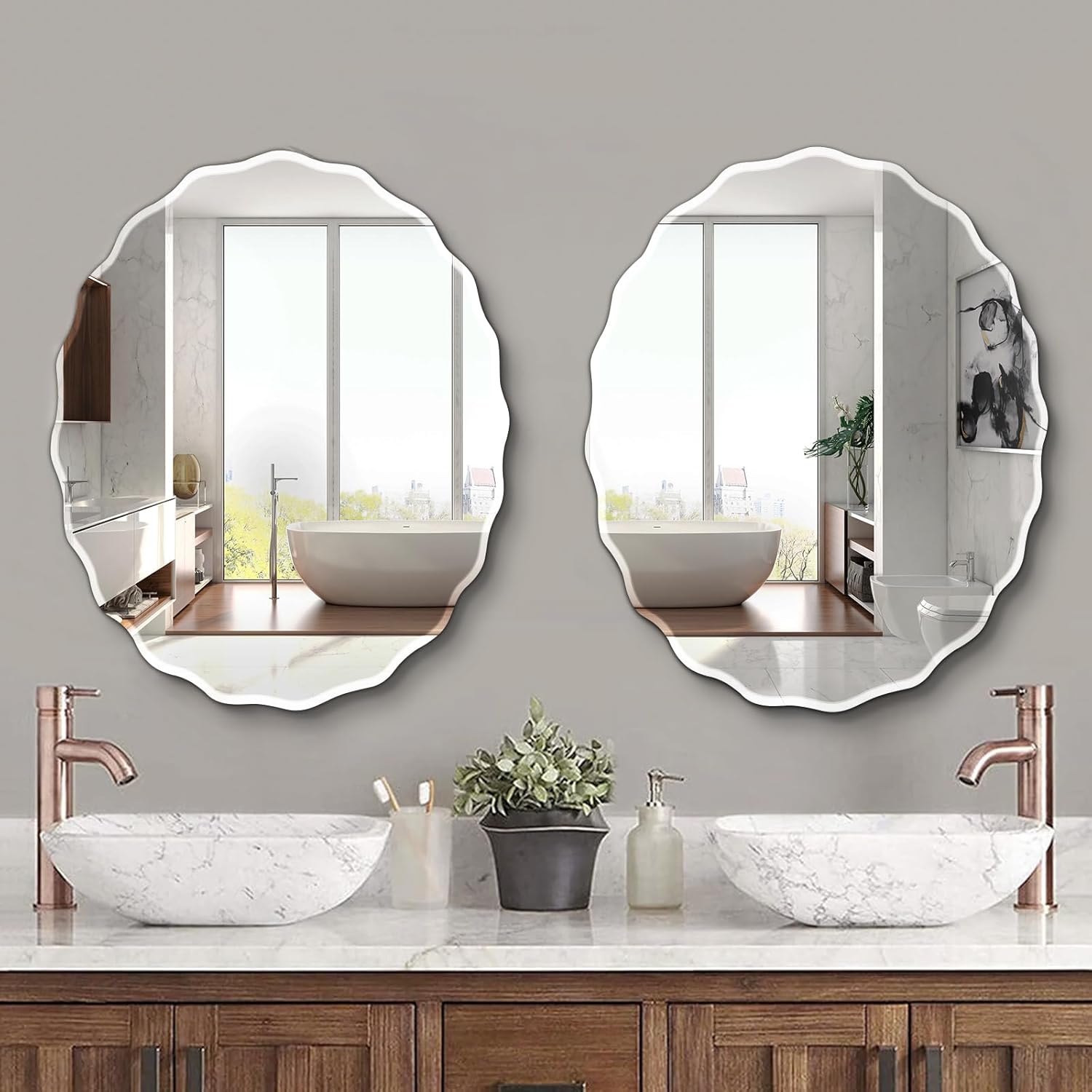 - 【Stylish Design】Frameless design combines with beveled edge gives the oval wall mirror a sleek and contemporary look. Polished edges ensure safety and a refined appearance. It's not only a practical reflection tool, but also an ideal wall decor mirror, adds a touch of sophistication to any room decor.