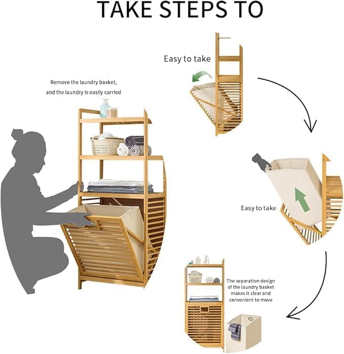 - 【Bamboo Laundry Hamper】Made from natural bamboo is both sustainable and practical, laundry basket with shelf is sturdy and durable, making it an ideal choice for families who are concerned about long-termism. Clothes hamper dimensions: 19.7"L x 11.81"W x 37.4"H.
