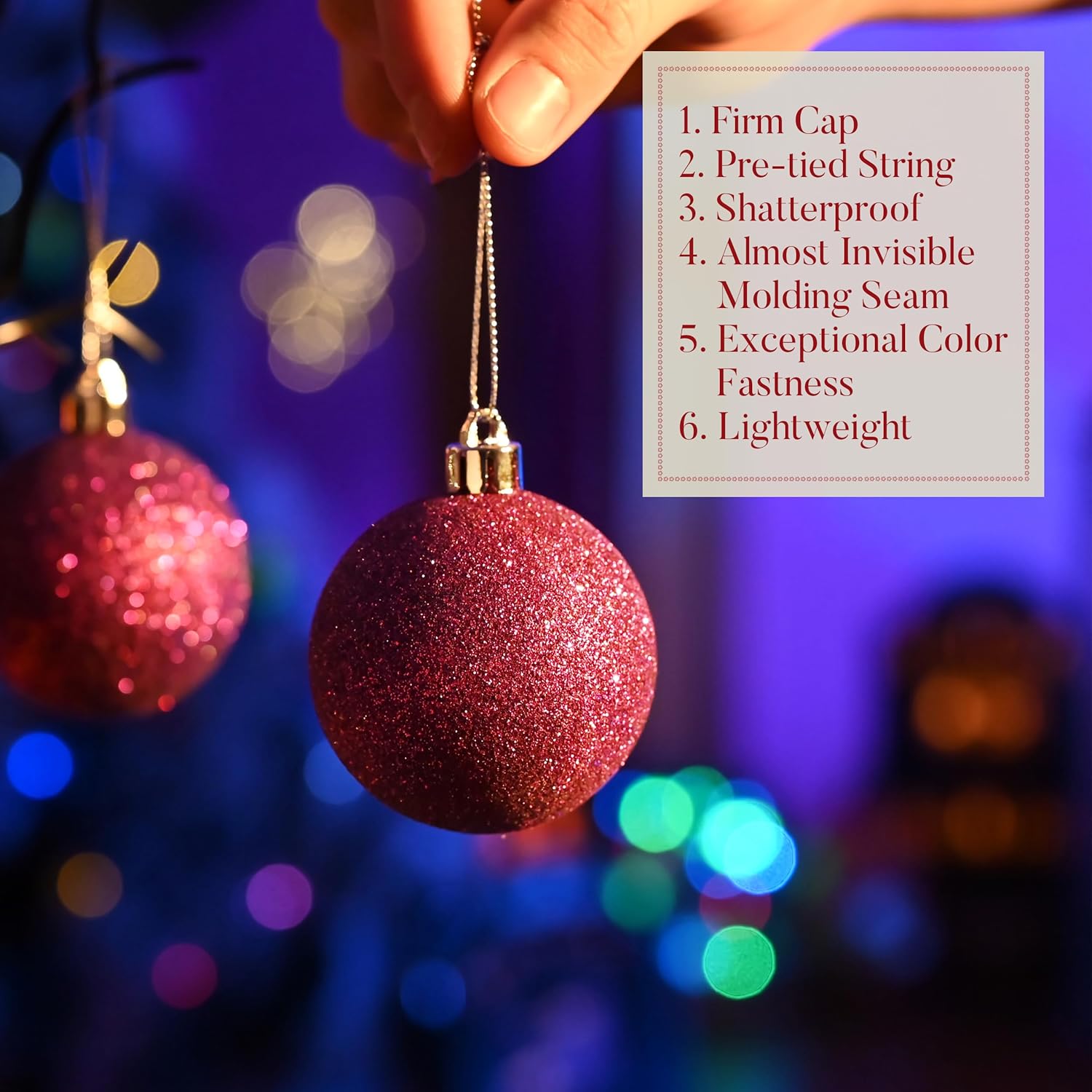 - 【Package and Size】This ornament ball set include 50pcs Christmas ornaments measuring 2.36 inches in diameter, featuring seamless connections for a polished look