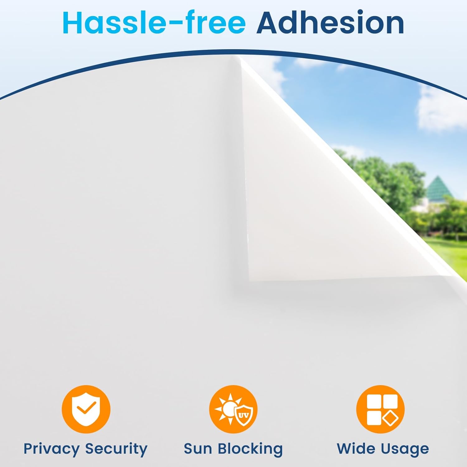 - Static Cling & Reusable: Privacy glass window film is coated with a special static cling layer. Just by using water during installation, the window film can securely adhere to the window through the power of static cling. Without the need for any additional adhesives. Privacy film allows for easy removal and repositioning of the film without leaving any residue or damage to the glass