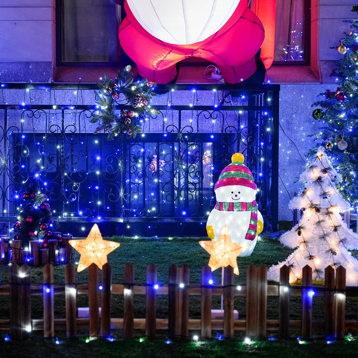 - Bright & Soft Christmas Lights- Blue and White Christmas lights are bright and not dazzling. In addition, the LED Christmas lights outdoors with plug greatly improve the stability of bulb brightness. Perfect for adding Christmas ambiance and wonderful for indoor & outdoor Christmas decorations.