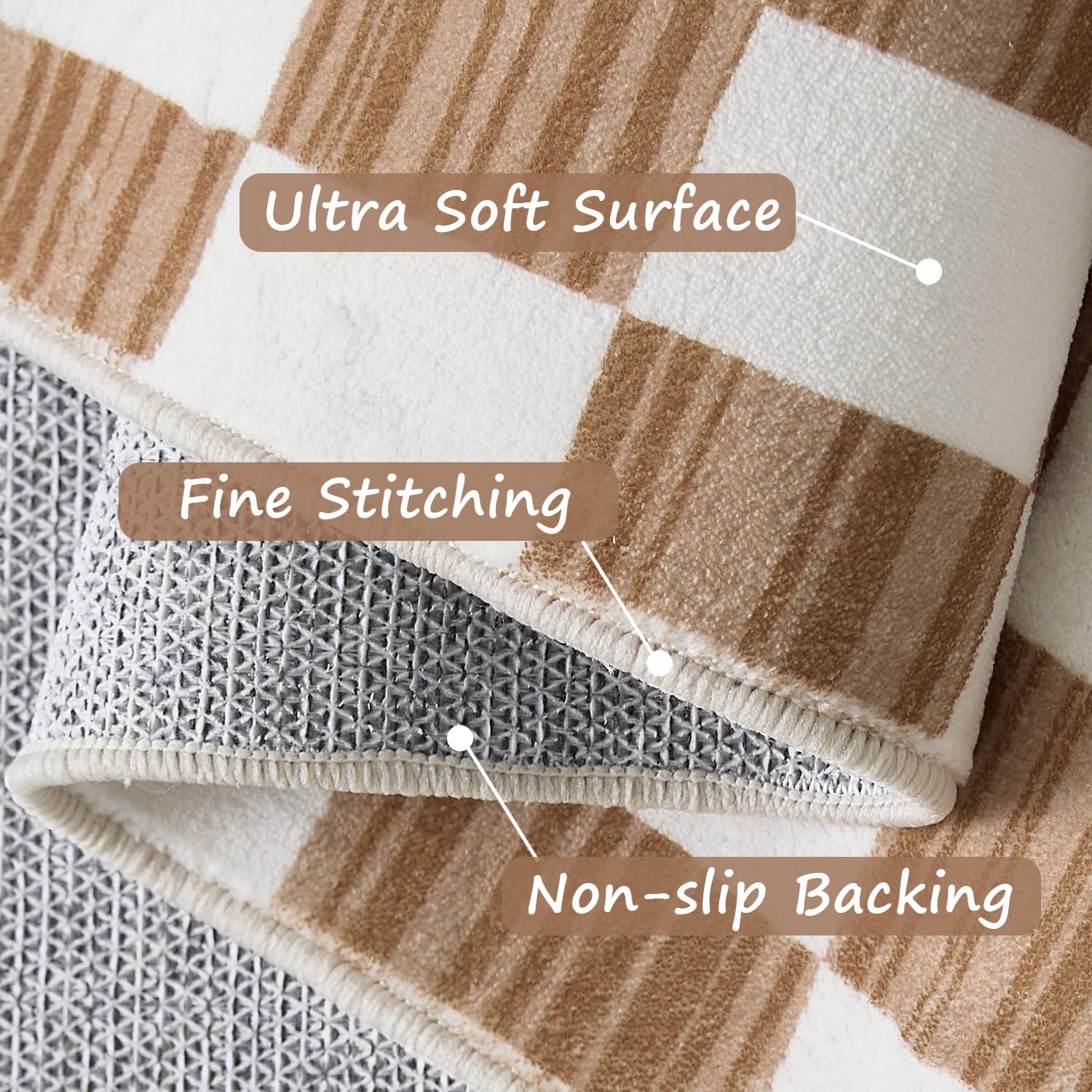 jinchan 4x6 Brown Checkered Area Rugs for Kids Room - Machine Washable Rug Modern Neutral Geometric Lattice Soft Non-Slip Carpet for Nursery Playroom Bedroom Entryway Living Room Home Office