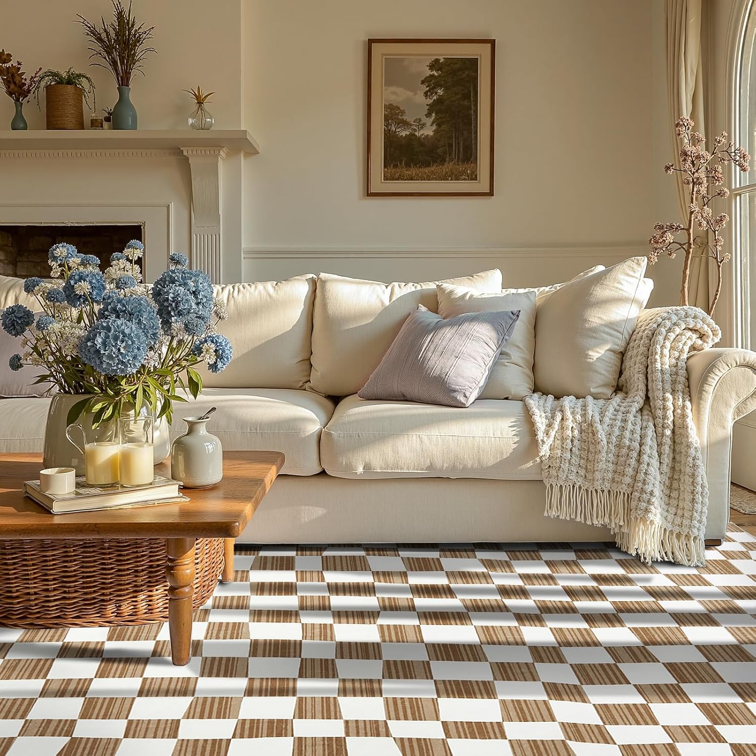 jinchan 6x9 Brown Checkered Area Rugs for Kids Room - Machine Washable Rug Modern Neutral Geometric Lattice Soft Non-Slip Carpet for Nursery Playroom Classroom Living Room Bedroom Home Office