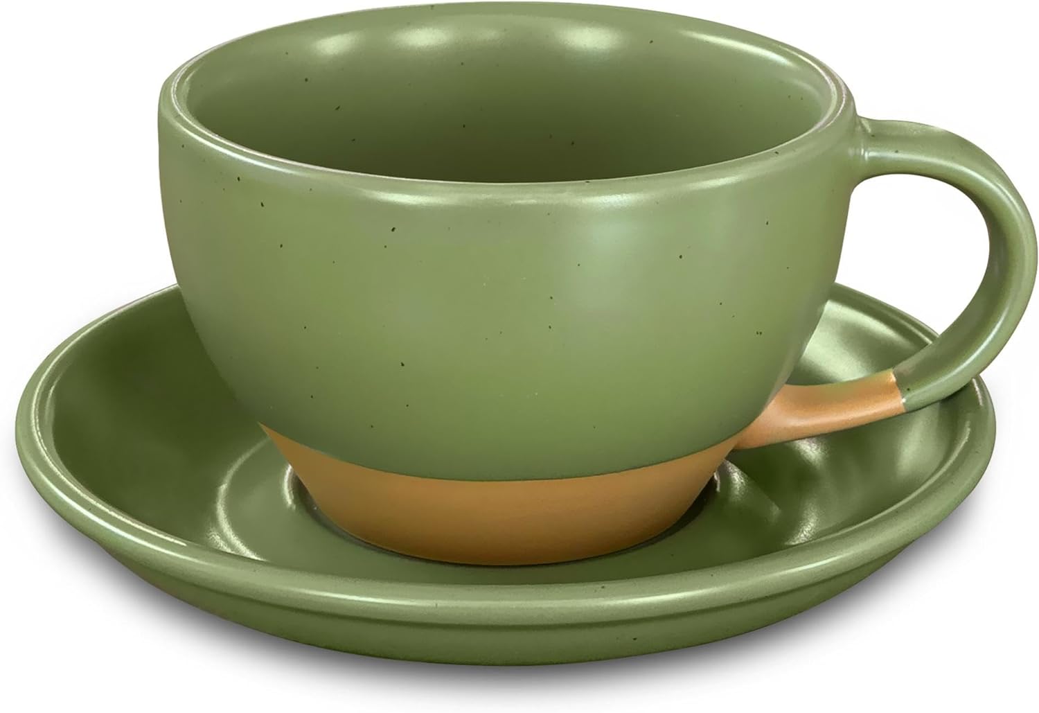 Mora Ceramic Latte Art Mug With Saucer - 10.5 oz, Round Bottom For Perfect Pours - Cafe Cups for Cappuccino, Espresso, Coffee, Tea etc - Porcelain Set for Baristas, Great Gift - Moss Green