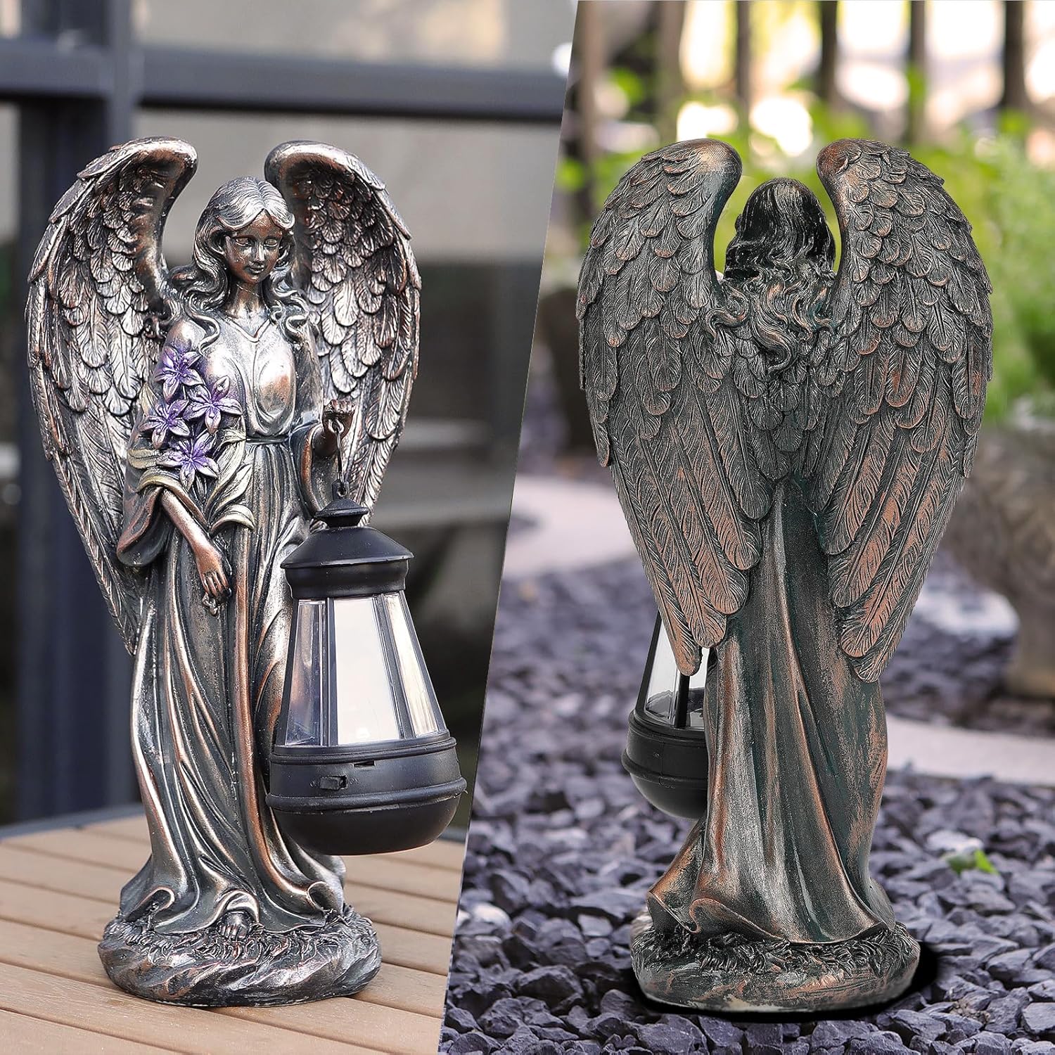 Solar Angel Outdoor Garden Decor Statues – 13.2 inches Solar Outdoor Sculptures for Outside Yard Art Patio Balcony Front Lawn Ornaments Gifts for Mom Grandma Women(Bronze)