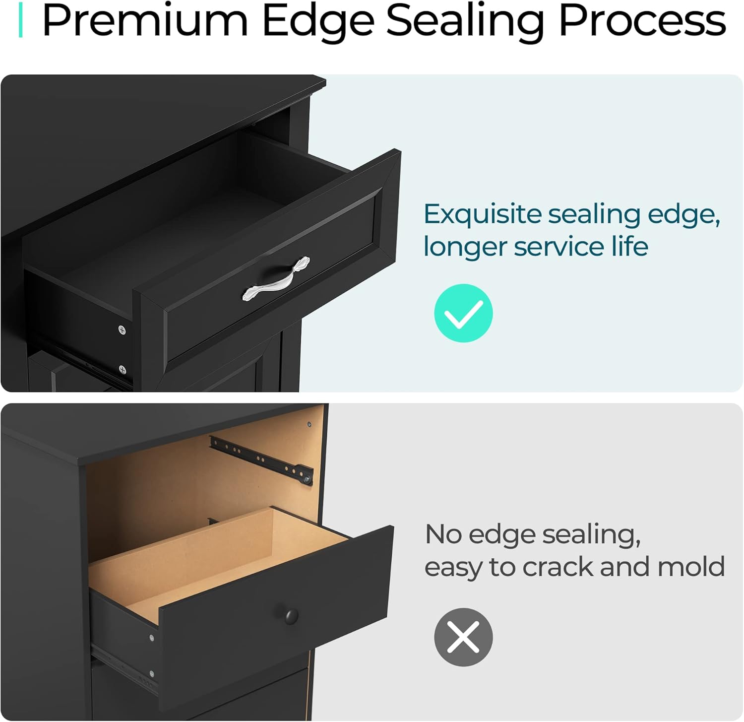 - [BUY WITH CONFIDENCE] Comes with detailed Installation instructions, parts and accessories are coded, precise holes make installation accurate and faster. Our anti-falling accessory and stabilizing device at the back of the dresser make sure it stays put and doesn't give you any unexpected surprises.
